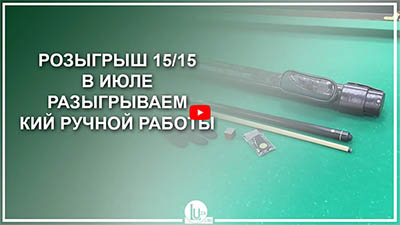 Также, в связи с тем, что в прошлом розыгрыше (15/15 июнь) не объявился победитель, то еще дополнительно проведем розыгрыш комплекта: кий мастерской Сергея Дроздова, Классика 14 запилов, Палисандр, тубус, мел, мелодержатель и перчатка.