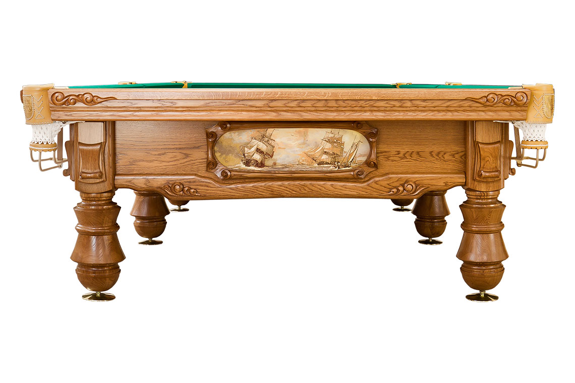 Коллекционный бильярдный стол «Адмирал» компании «Руптур» предназначен для ценителей морской тематики. Дизайн стола «Адмирал» создан под впечатлением от оформления старинных парусных судов, которые богато покрывались резьбой ручной работы. Инсталлированные в борта картины, отражающие сцены морских баталий, удачно сочетаются с искусными и практически не повторяющимися волнами резных узоров.