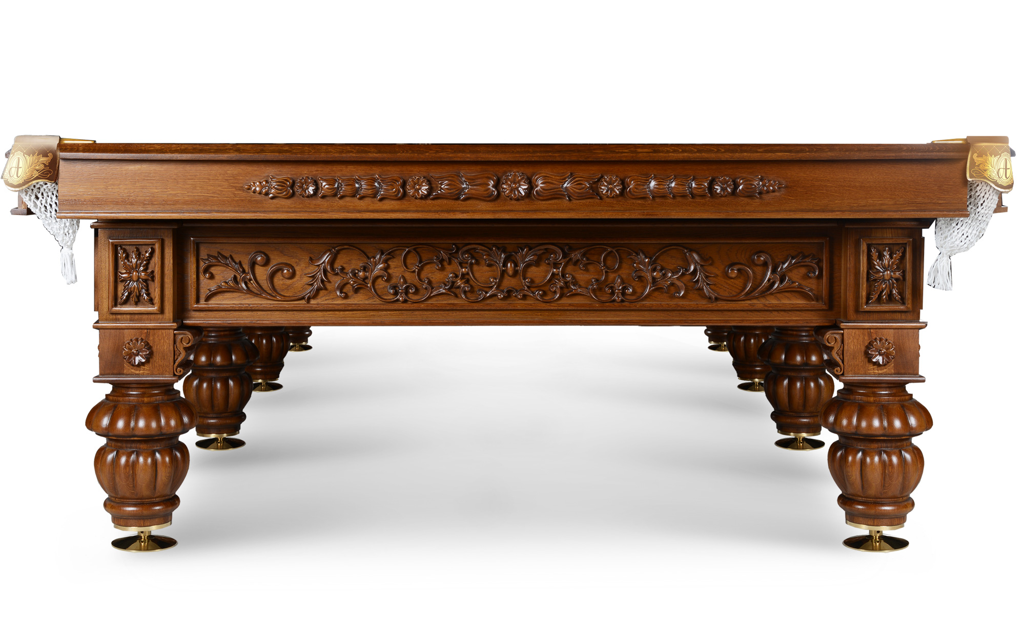 Аристократичный облик стола «Ампир» придется по вкусу ценителям классики. Эта модель создана на основе передовых технологий современной бильярдной индустрии и высококачественных материалов премиум-класса.