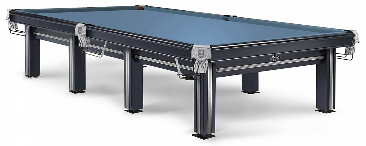 Модель стола имеет два вида комплектации, отличающихся чашками опор и скобами луз.