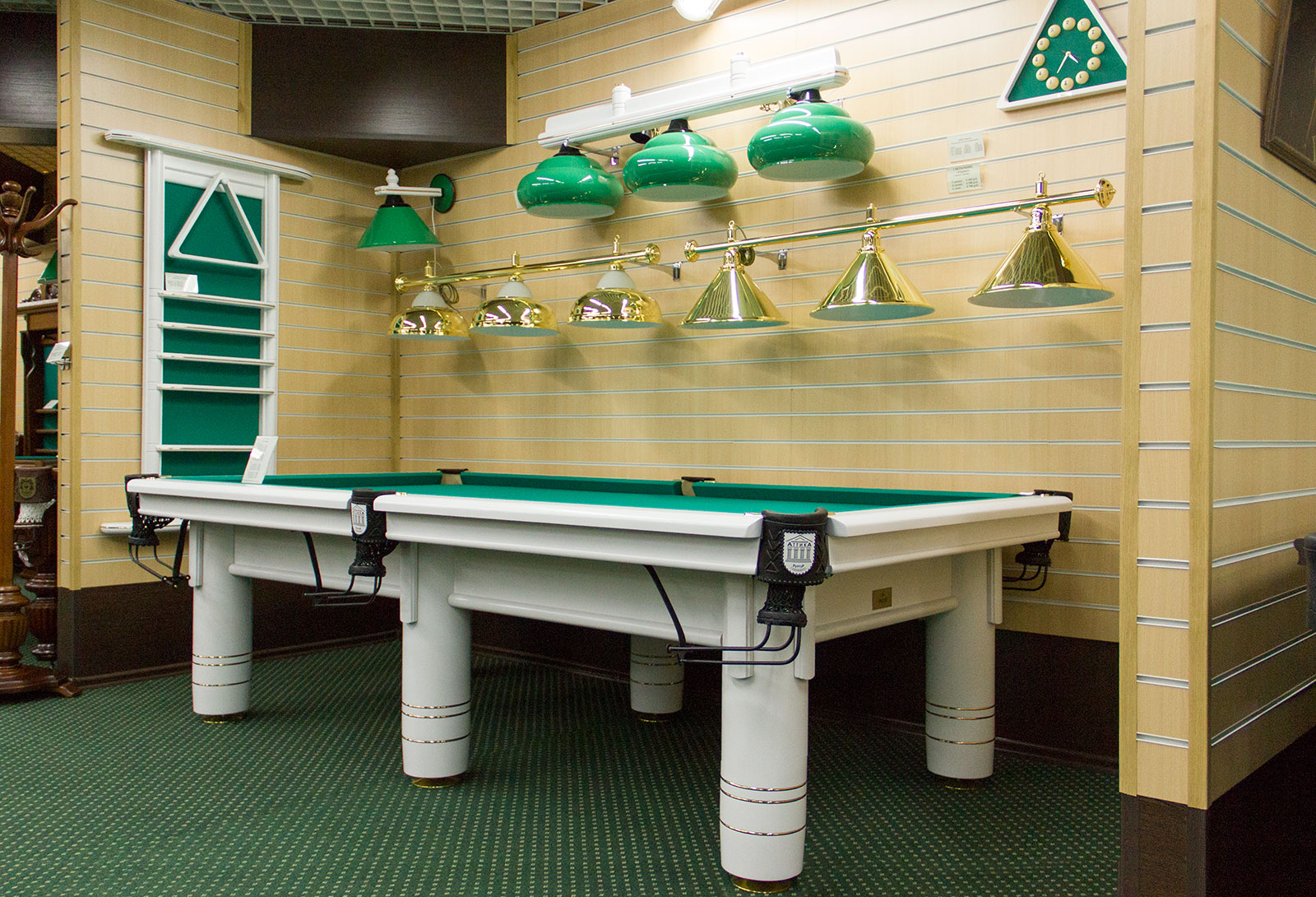 На ваш выбор – любой оттенок бильярда из нашей палитры, но мы рекомендуем кроме белоснежного, цвет 22/4 – темный с серебряными кольцами на ногах. В белом же цвете деревянные поверхности стола «Аттика» имеют удивительное сходство с мрамором, лучшие сорта которого добывают в одноименном регионе Греции. Отборный массив дуба, ясеня или ольхи — материалы, гарантирующие прочность и долговечность стола даже при самых интенсивных спортивных нагрузках. Выбор материала изготовления обеспечивает покупку оптимального по стоимости оборудования. Для приобретения доступны киевница и светильник «Аттика» в таком же стиле.