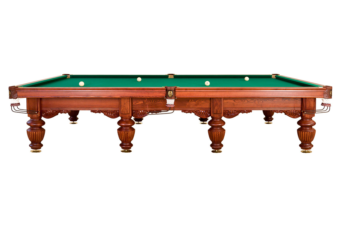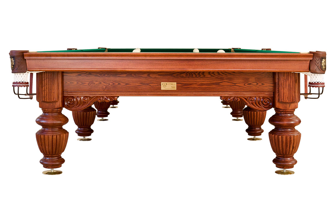 Бильярдный стол «Барон» компании «Руптур» — один из самых ярких и запоминающихся представителей коллекционной серии. Он отличается отборными материалами изготовления, великолепным оснащением и продуманным дизайном с большим количеством оригинальных элементов. Ноги стола выполнены из массива натуральной древесины и украшены изящными каннелюрами. Несмотря на пышный объем, они кажутся легкими и грациозными. Природную красоту дерева подчеркивает глубокий и выразительный резной орнамент.