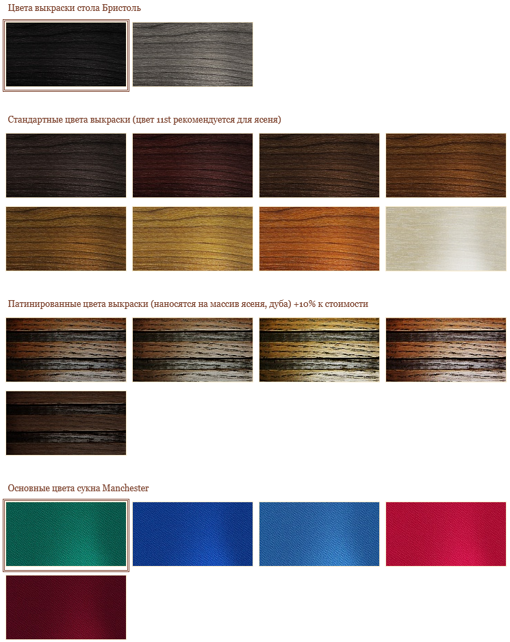 «Бристоль» укомплектован высококачественными материалами: бортовая резина Start Super Pro, сукно - Сукно Manchester 70 wool Yellow green competition, природный сланец ORERO или камень Super Stone в основе игрового поля. Новая технология безупречного крепления борта к плите MOUNT PERFECT.