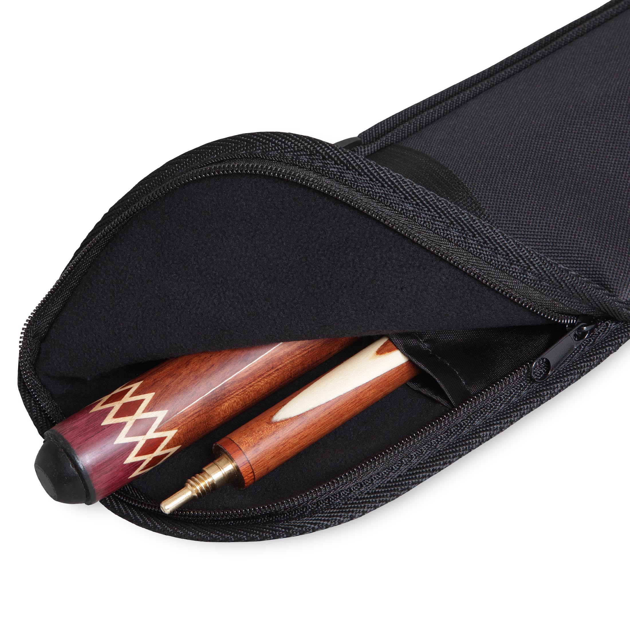 Модель мягкого чехла 1-10 предназначена для хранения и транспортировки в разобранном состоянии 2-составного кия для русской пирамиды. Шафт и турняк кия помещается в изолированные отделения чехла через торцевое отверстие, которое закрывается на замок-«молнию». Наружная часть чехла изготовлена из ПВХ, современного износостойкого материала, который препятствует проникновению влаги и грязи. Внутренняя поверхность чехла покрыта синтетической тканью с коротким мягким ворсом, которая выполняет амортизационную и теплоизолирующую функции. Транспортировка чехла производится с помощью наплечного ремня, который регулируется по длине.