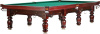 Бильярдный стол классического дизайна для пирамиды. Конструкция стола включает в себя ряд новейших разработок, используемых в производстве бильярдного оборудования, что поднимает эту модель на новый уровень качества, долговечности и профессионализма. Рама и ножки стола изготовлены из переклеенных брусков твердых пород дерева, что обеспечивает прекрасную жесткость и отличную устойчивость к перепадам температур. Каждая из ножек крепится к боковой части рамы (царге) двумя болтами, снабженными шайбами специальной формы, которые не позволяют каркасу стола расшатываться в процессе эксплуатации. Ширина борта, изготовленного из массива твердых пород дерева, увеличена с распространенных 90 мм до 100 мм, а длина крепежного болта до 120 мм., что позволяет игроку полностью контролировать траекторию движения шаров.