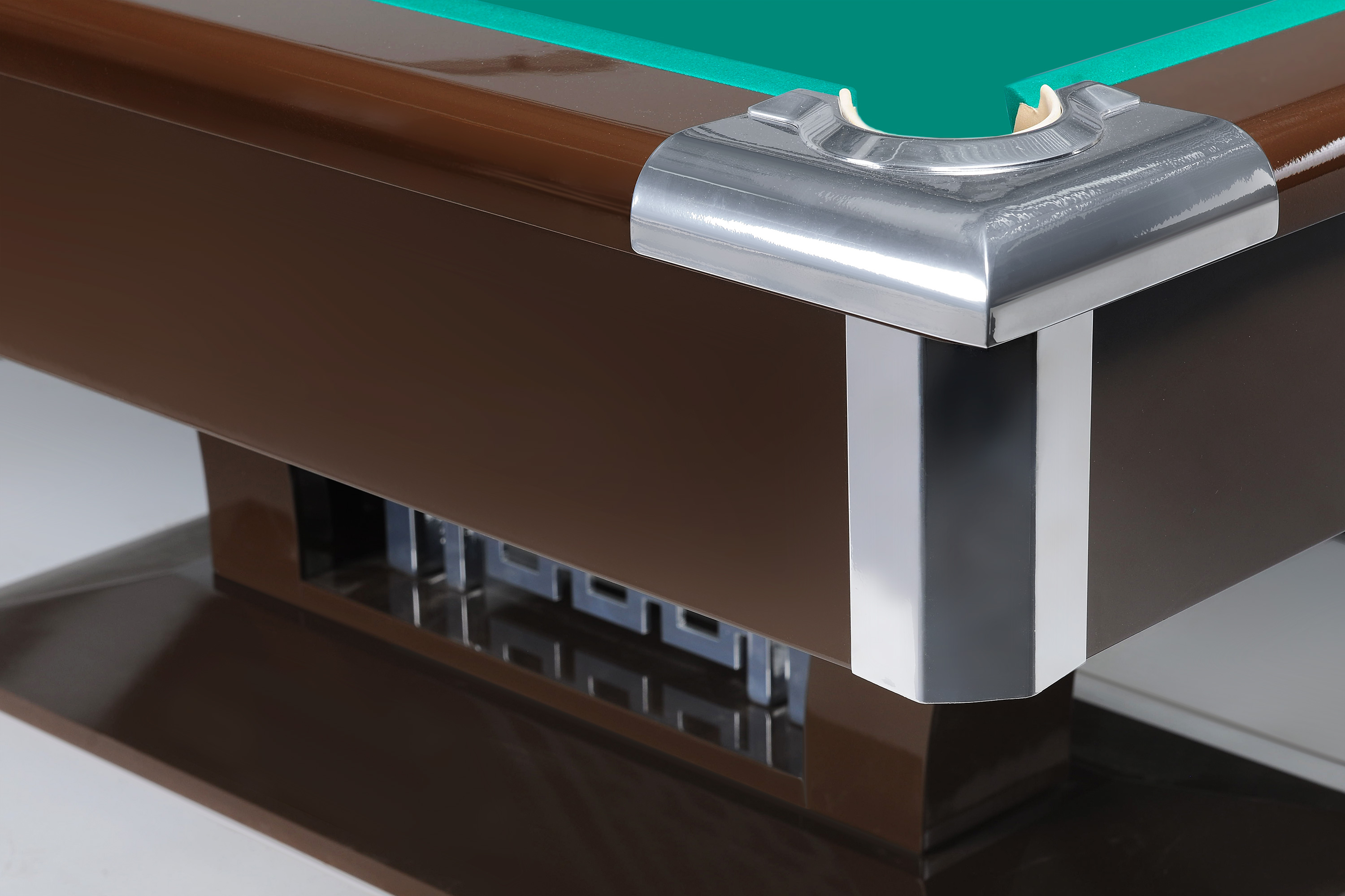 Независимый несущий металлический каркас в основании стола обеспечивает непревзойденную устойчивость всей конструкции. Стол укомплектован высококачественной бортовой резиной и высококлассным бильярдным сукном. High-style по праву можно назвать результатом передовых разработок «Старт».