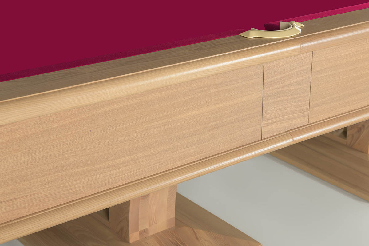 В High-style Lux интегрирована несущая металлическая рама, благодаря которой стол максимально статичен. Металлокаркас обеспечивают неподвижность конструкции на протяжении всего срока эксплуатации, дает максимально точный отскок шара и исключает деформацию дерева от перепадов влажности и температуры, такой стол не требует постоянного контроля болтовых соединений.