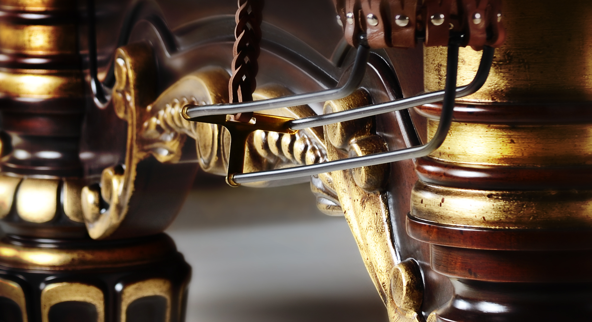 латунные, отделаны кожей ручной работы, скат обрезиненный