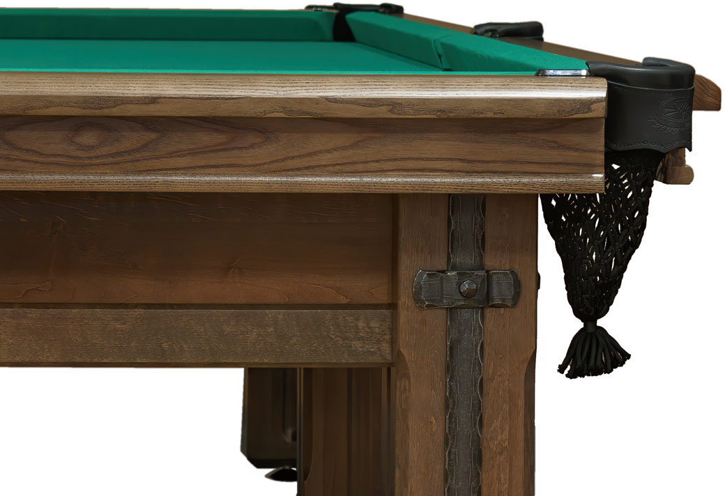 Бильярд «Камелот» по праву займет самое достойное место в доме, а также в сердцах его хозяев. Стол изготавливается из отборного массива ольхи и комплектуется плитой из натурального сланца в качестве основы игрового поля. Материалом для бортов служит ясень – особо прочная твердолиственная порода дерева, значительно увеличивающая срок службы бильярдного стола и сохраняющая его первозданную эстетику.
