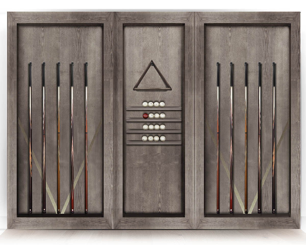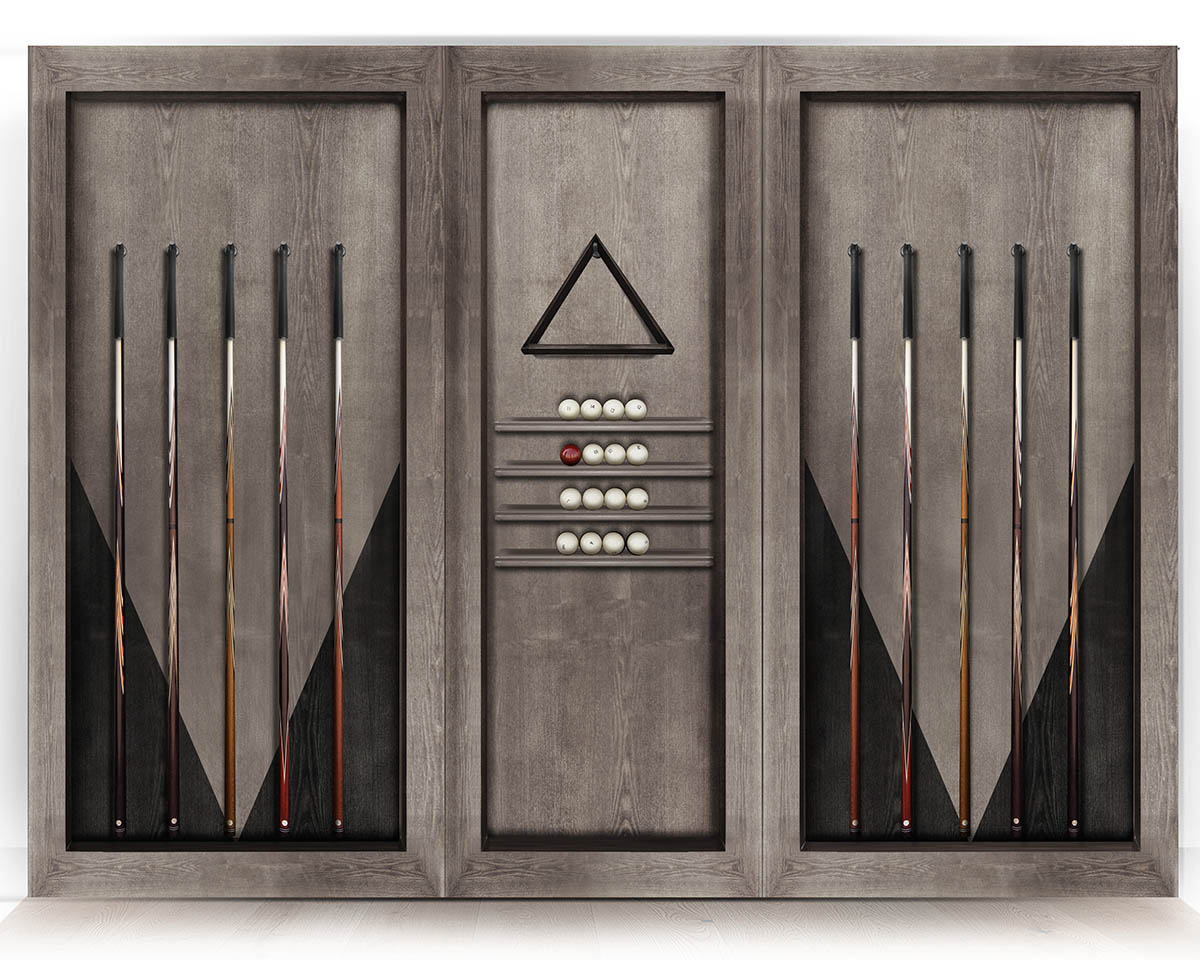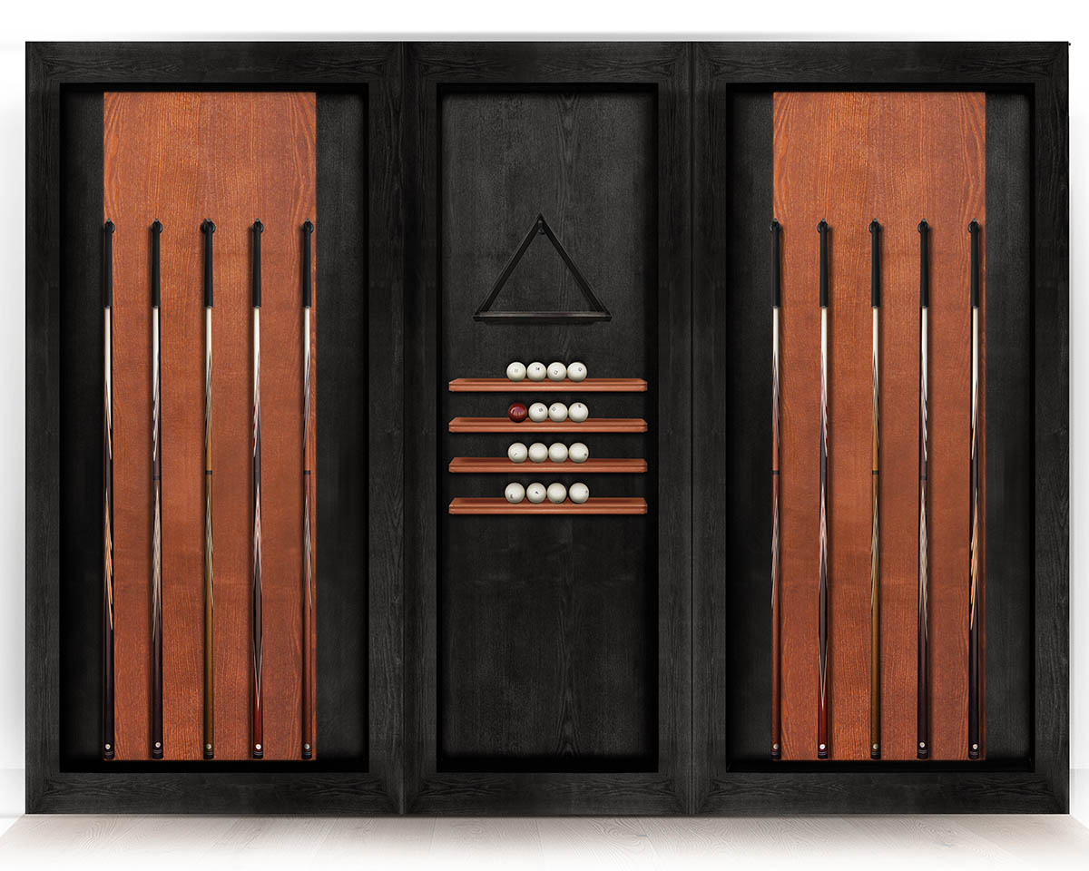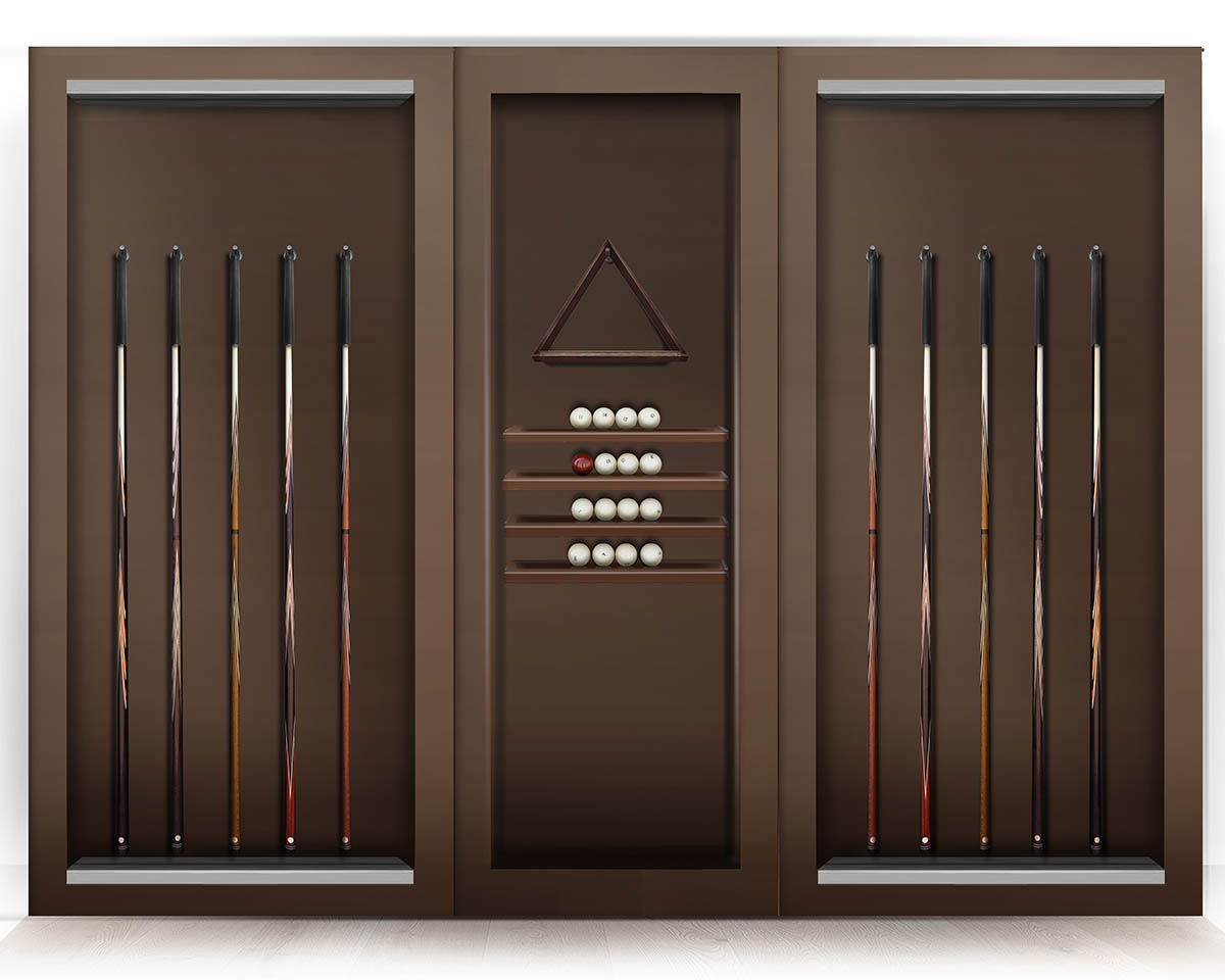 Киевница состоит из 3 частей и рассчитана для хранения 10 киев. Оснащена специальными полочками для бильярдных шаров и имеет удобный подвес, который обеспечивает легкий доступ к треугольнику для расстановки шаров. Данная киевница позволяет держать все необходимое оборудование в одном месте.