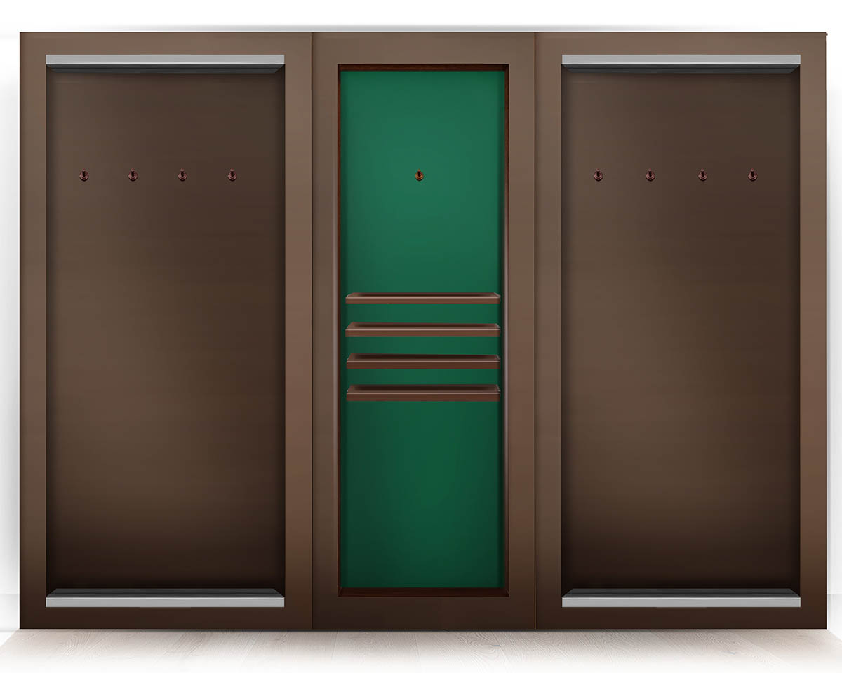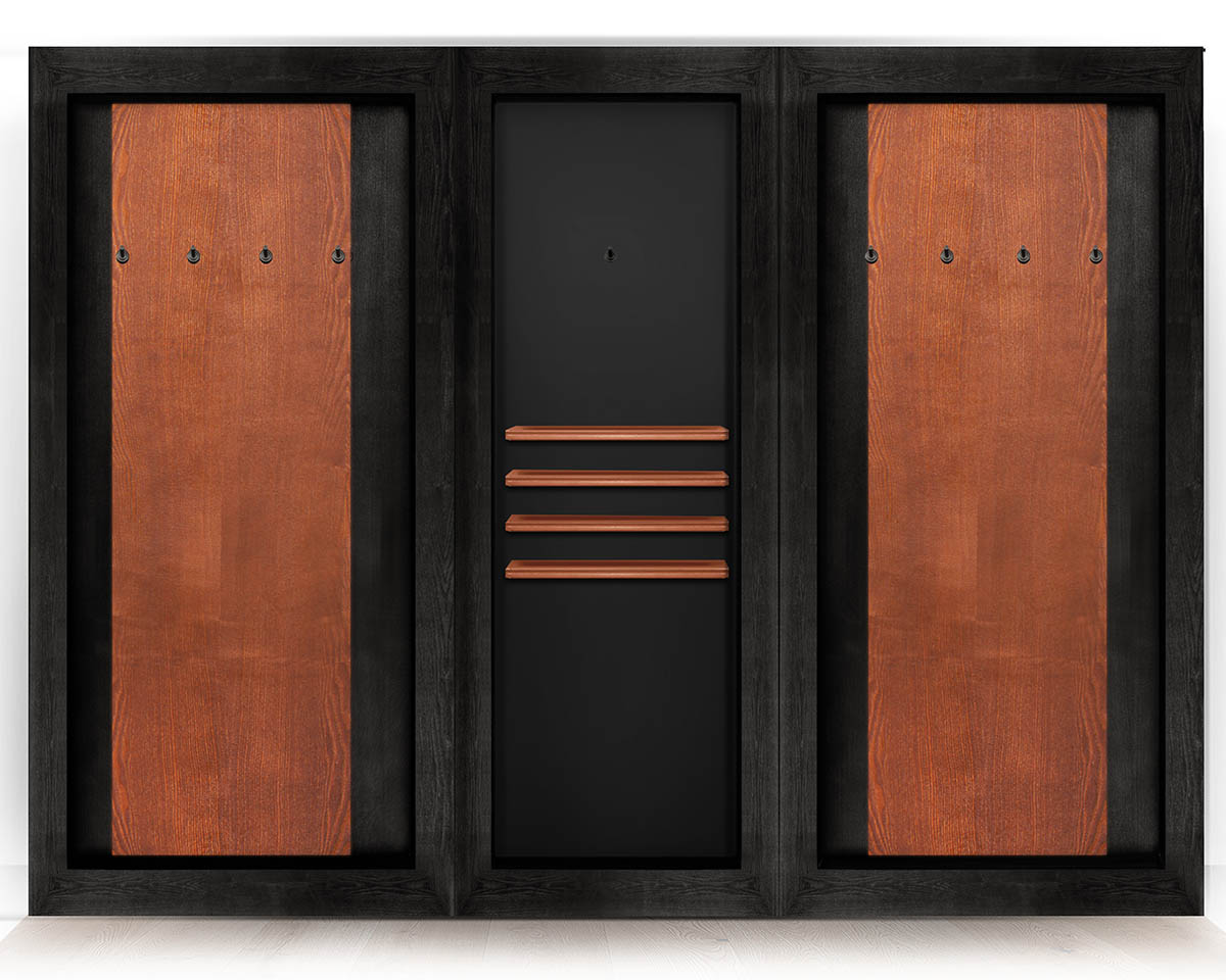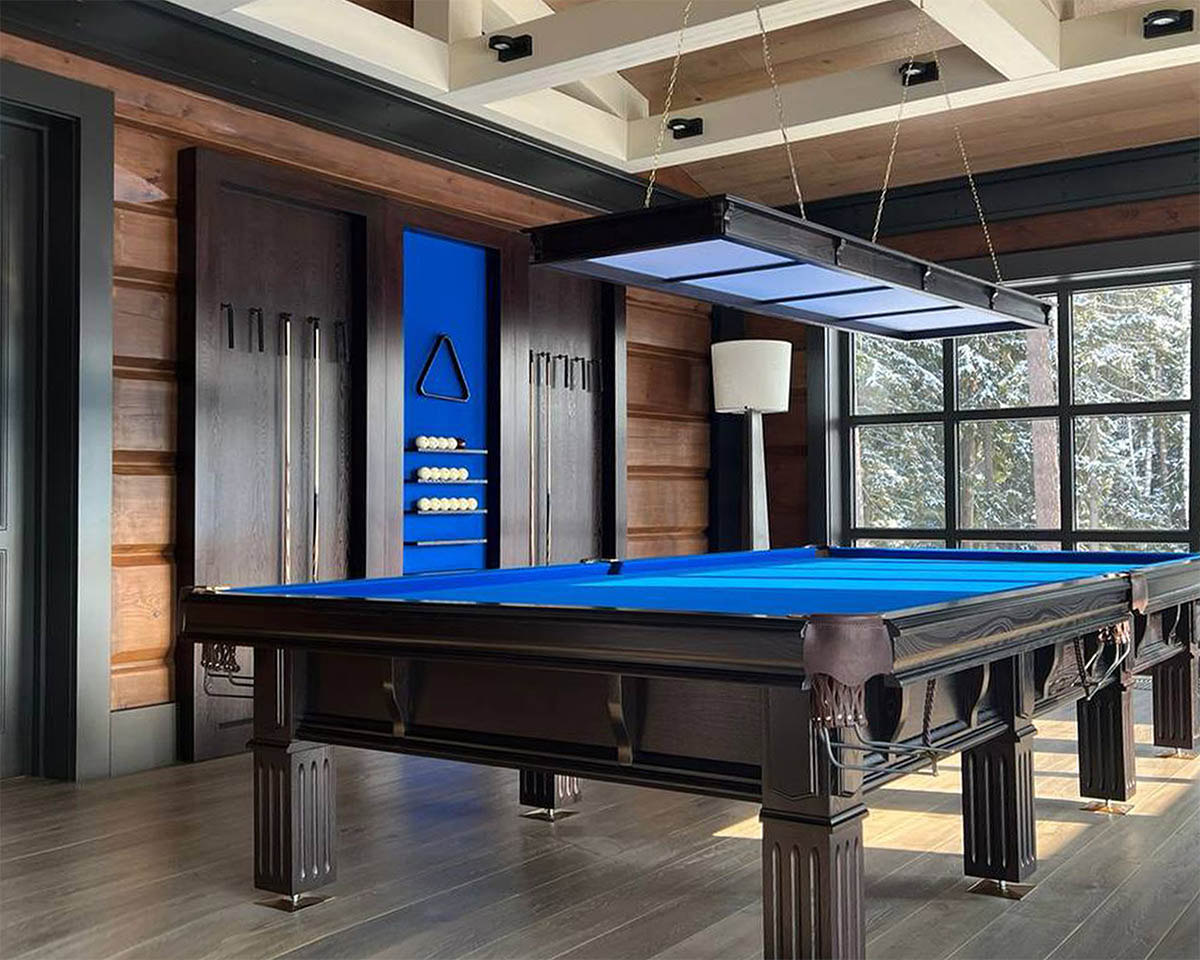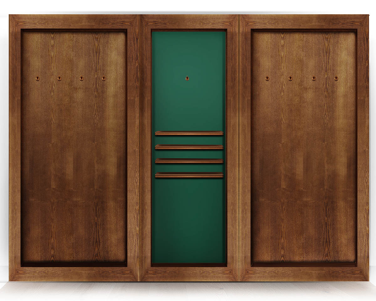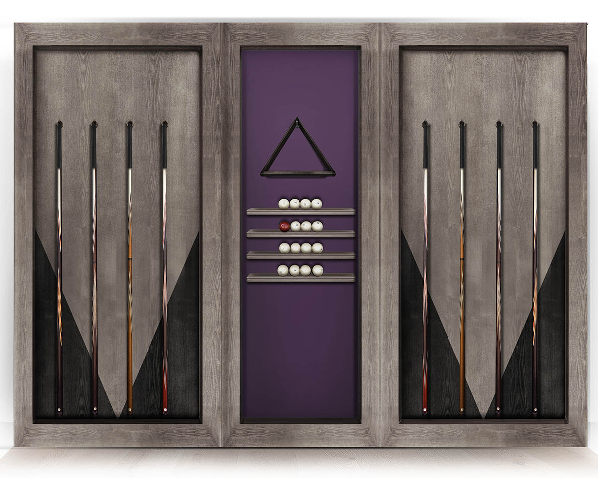 Киевница состоит из 3 частей и рассчитана для хранения 8 киев. Оснащена специальными полочками для бильярдных шаров и имеет удобный подвес, который обеспечивает легкий доступ к треугольнику для расстановки шаров. Данная киевница позволяет держать все необходимое оборудование в одном месте.
