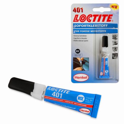 Продукт LOCTITE 401 - быстро полимеризующийся, однокомпонентный цианакрилатный клей с низкой вязкостью. Предназначен для материалов,трудно поддающихся склеиванию. Поверхностная влага в меньшей степени влияет на скорость вулканизации, чем у других стандартных сортов CA. Быстрое склеивание широкого ряда материалов: металлов, пластиков, эластомеров. Хорошо склеивает пористые материалы или абсорбенты, как например, дерево, бумагу, кожу или ткань.