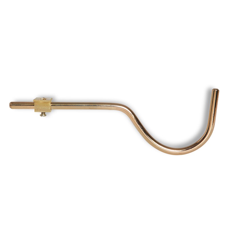 Крюк для размещения на бильярдном столе дополнительных аксессуаров. Крепится на горизонтальную поверхность каркаса стола. Степень выдвижения крюка регулируется. Изготовлен из металла, покрытого нитритом титана, который придает золотой блеск, благодаря чему данный аксессуар может сочетаться с фурнитурой бильярдного стола.
