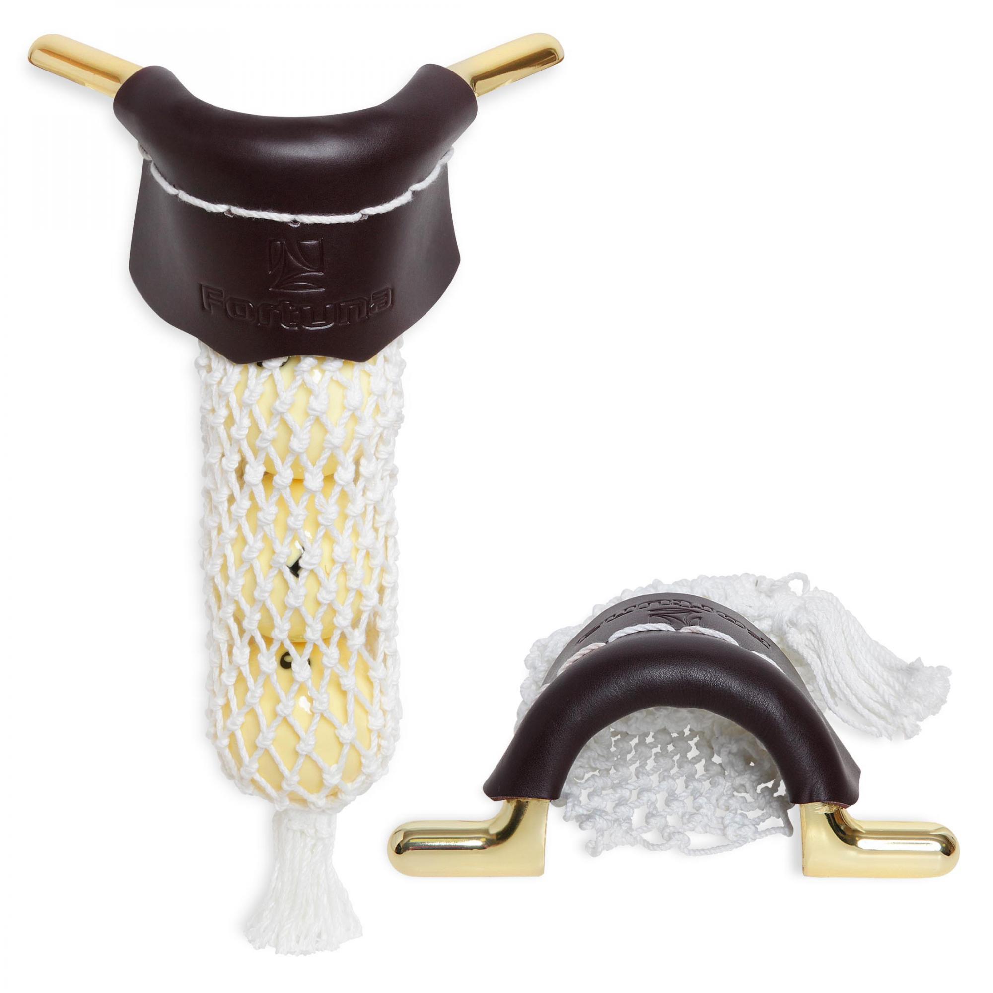 Fortuna Brookstone - готовый для монтажа комплект луз для стола русской пирамиды. Лузы предназначены для игры шарами диаметром 60,3 мм. Набор состоит из шести уже смонтированных луз: латунных скоб и кожаных пелерин, удерживающих сетки для шаров из нейлона. Внутренний диаметр монтажной втулки - 8мм, внешний - 15 мм.