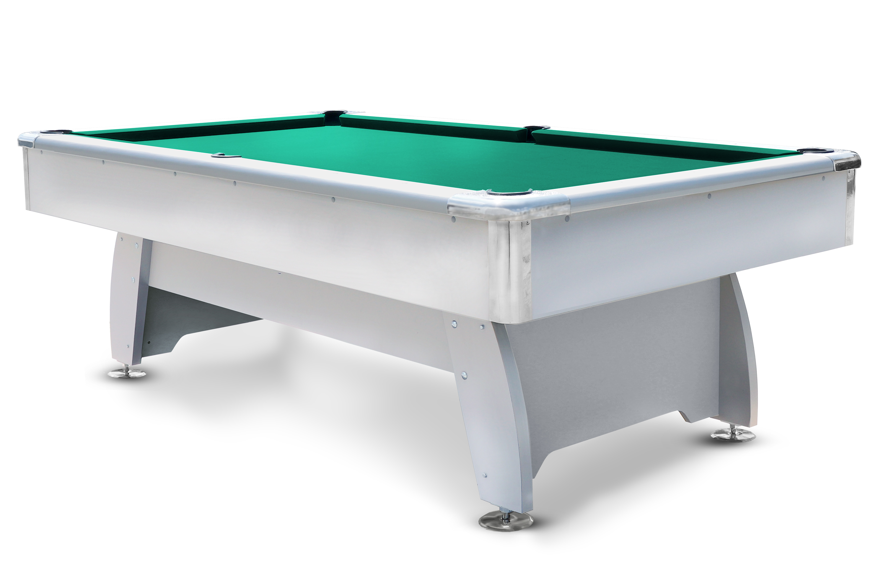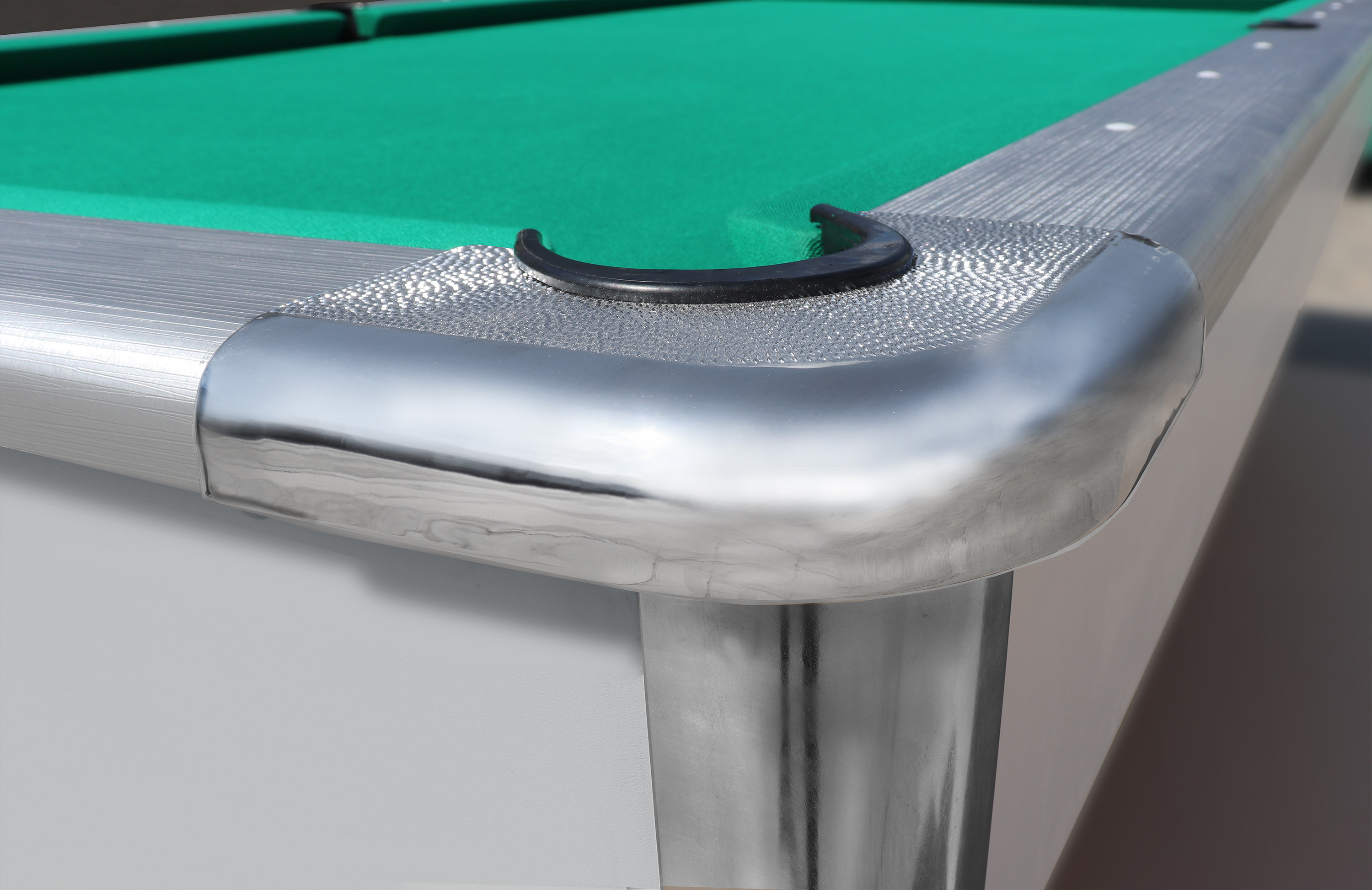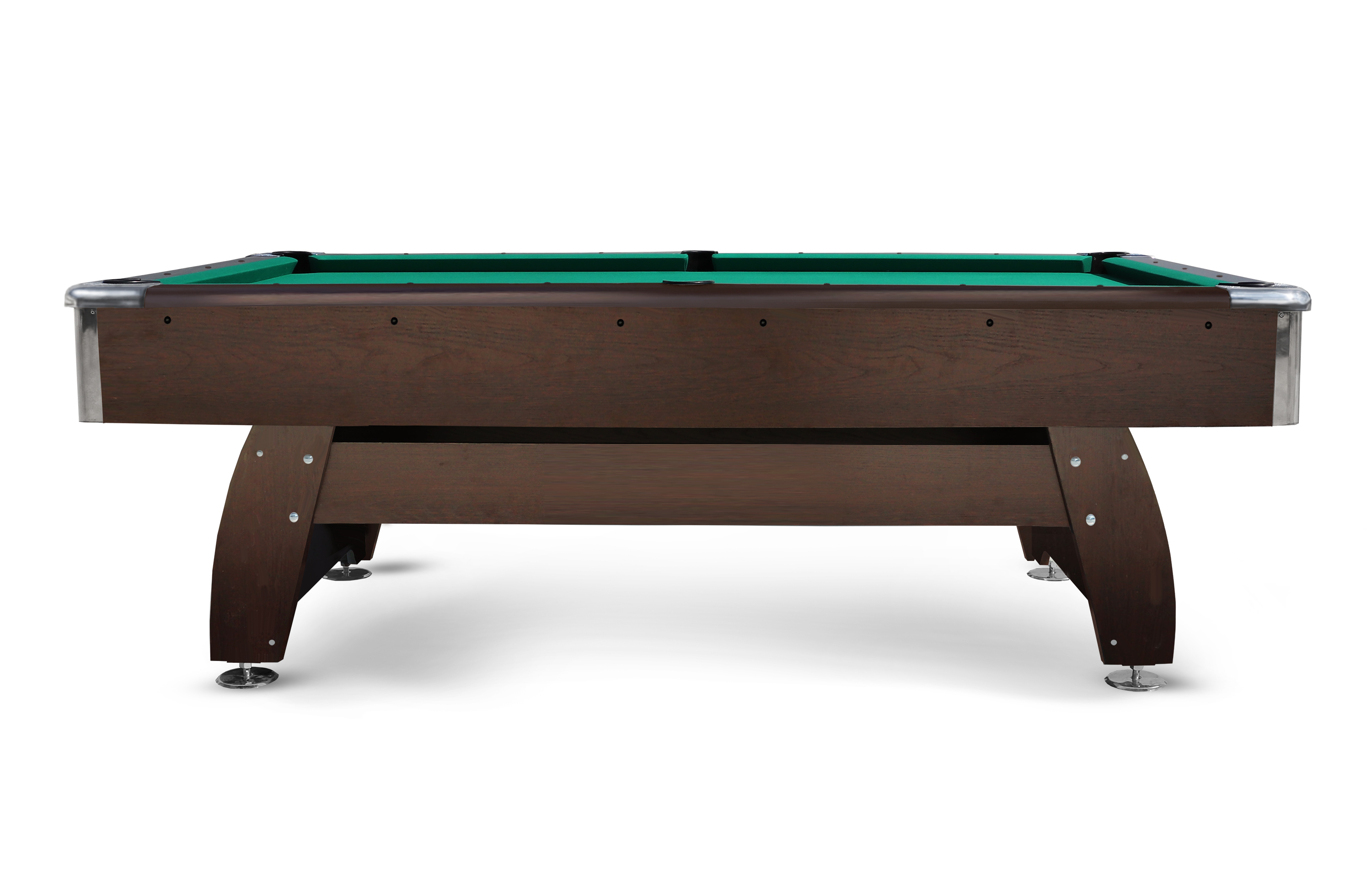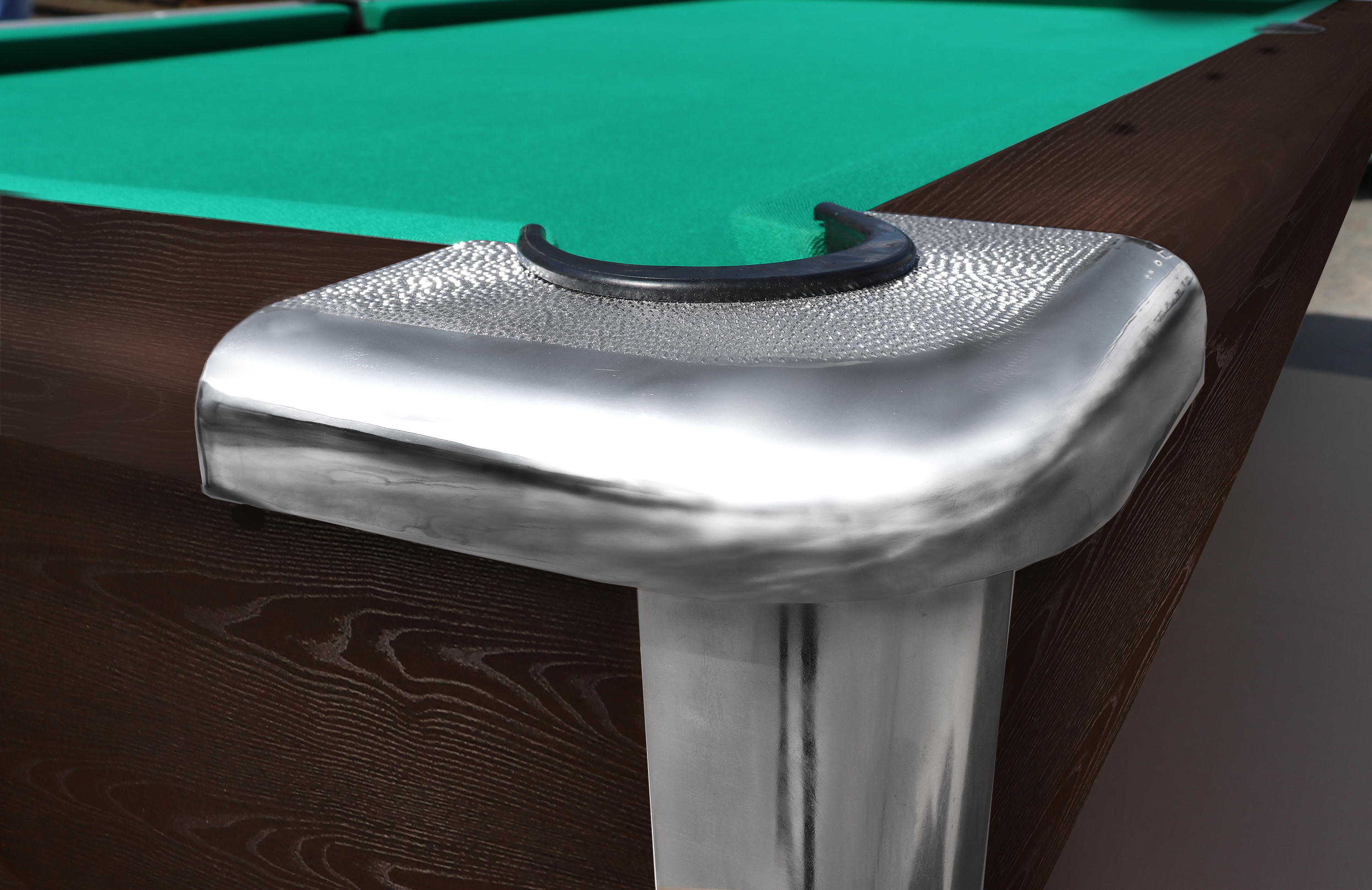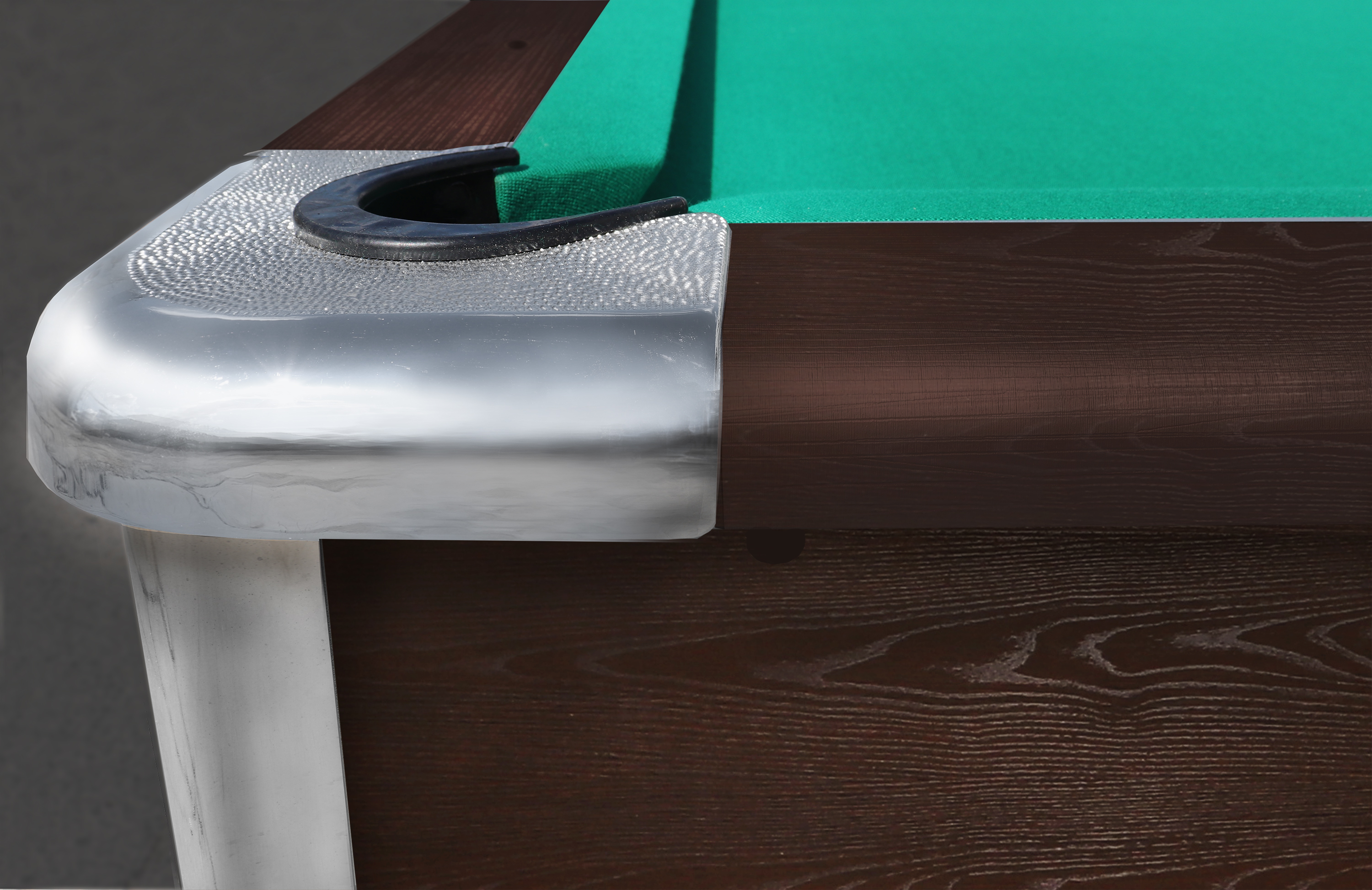 Конструкция стола выполнена из МДФ и ЛДСП, оснащена основательным лафетом, имеет усиленную несущею раму, повышенную статичность и жесткость, максимально приближенную к профессиональному уровню. Модель с системой ската шаров. Основа игрового поля может комплектоваться натуральным сланцем, камнем PBS или камнем Super Stone.