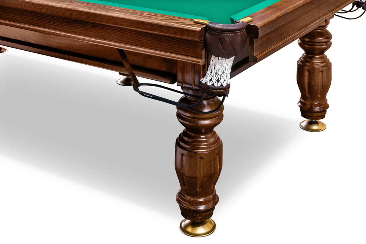 Стол комплектуется лузами с выкатами, как на серьёзных турнирах.