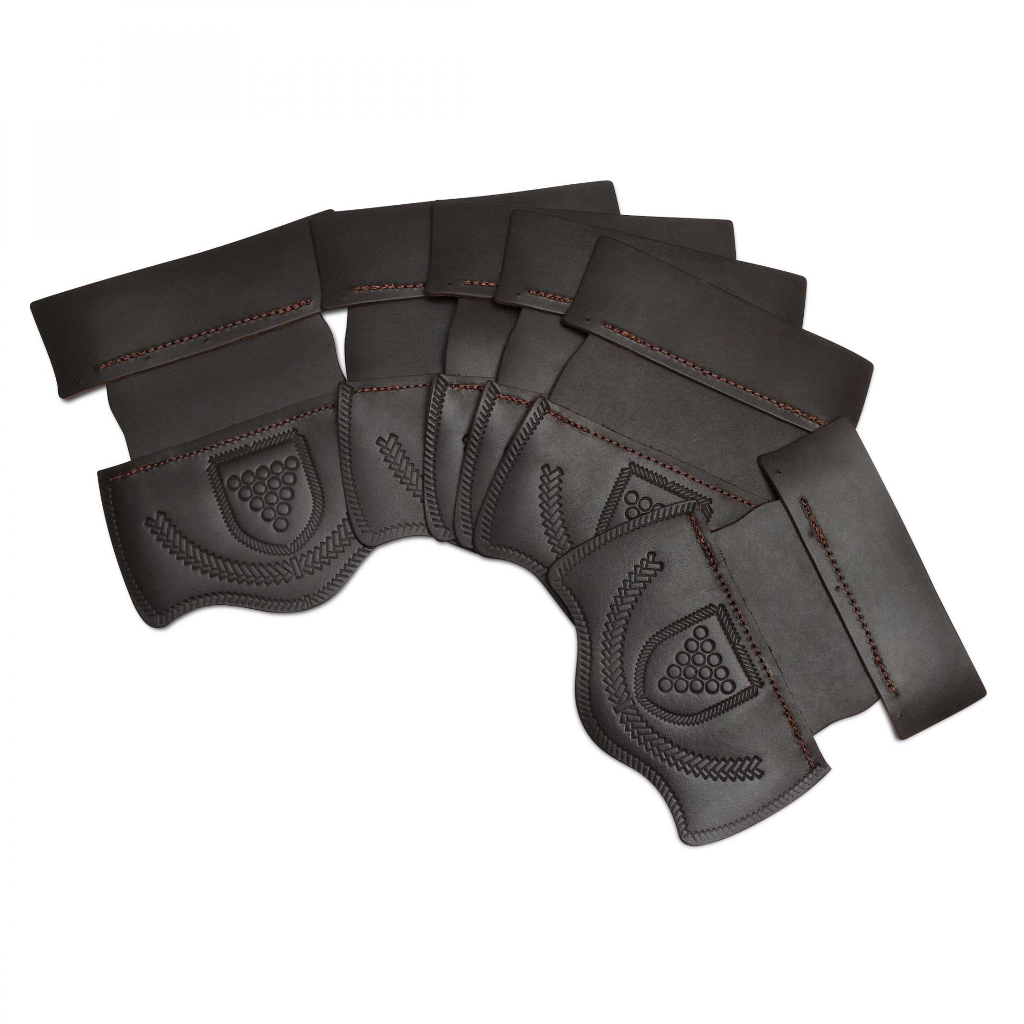 Пелерины для луз - специальные накладки из кожи, предназначенные для амортизации и гашения энергии влетающего в лузу шара. Они защищают скобы от удара шаров, а также служат для крепления сетки для сбора упавших в лузу шаров. Пелерины Deluxe разработаны из темной кожи, прошитой и с тисненым рисунком в виде «бильярдного герба». Продукт произведен в России.