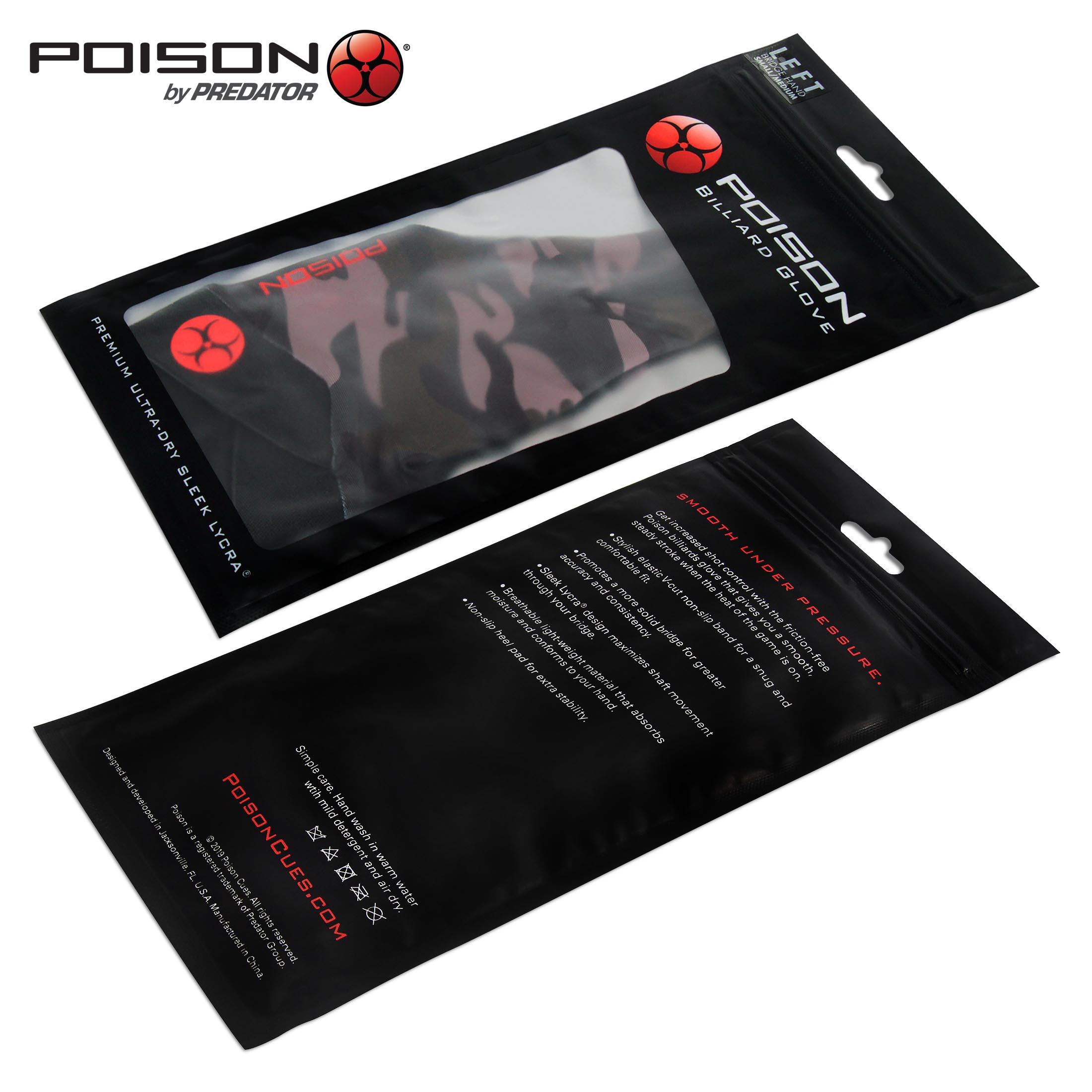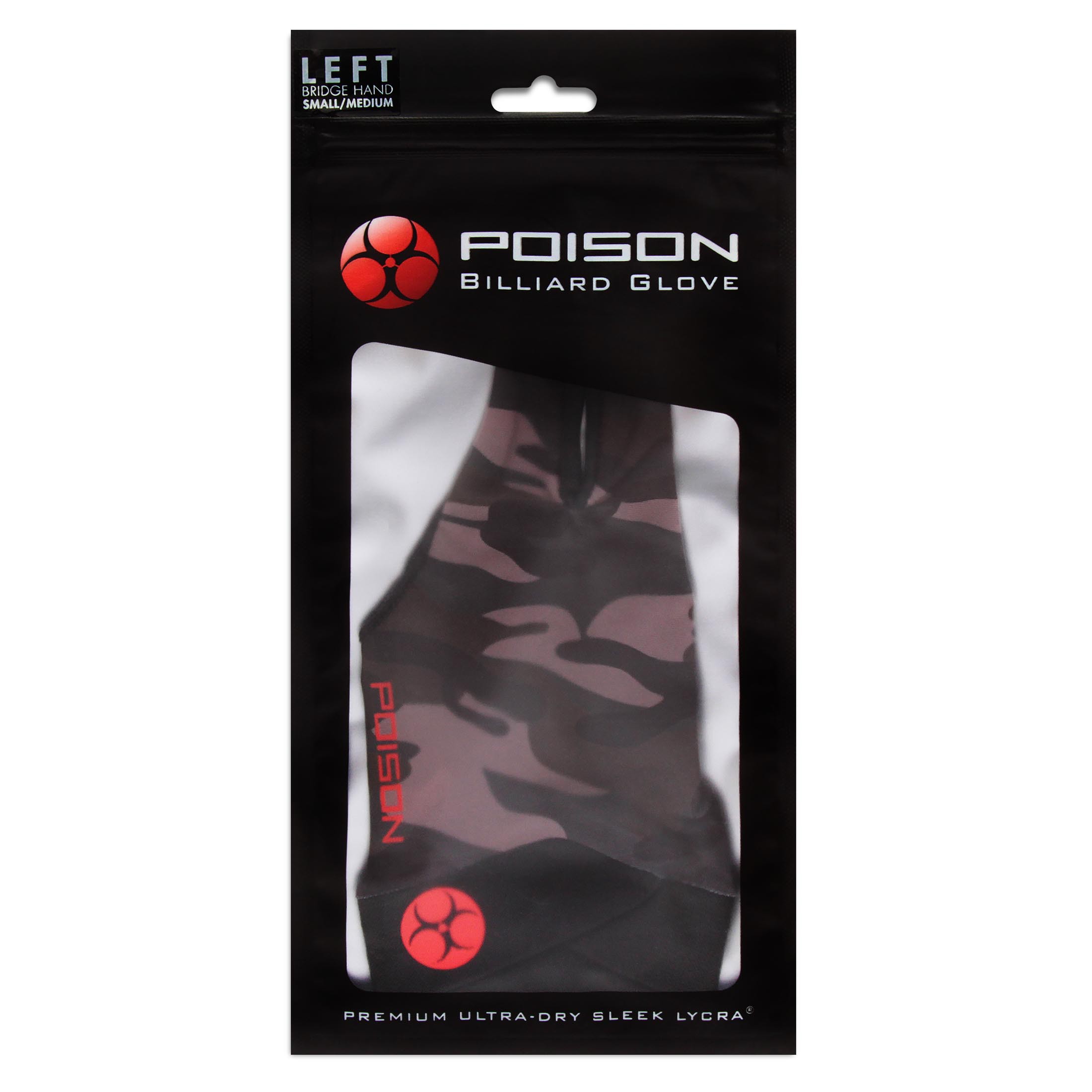 Бильярдная перчатка Poison Camo выполнена из лайкры премиального качества, обладающей свойством быстрого высыхания, что позволяет точно контролировать движения даже в самые напряженные моменты игры. Благодаря материалу, перчатка плотно облегает кисть руки и обеспечивает плавное скольжение шафта. Обладая уникальными свойствами и обеспечивая высокий уровень комфорта, Poison Camo позволяет получить значительные преимущества во время игры.