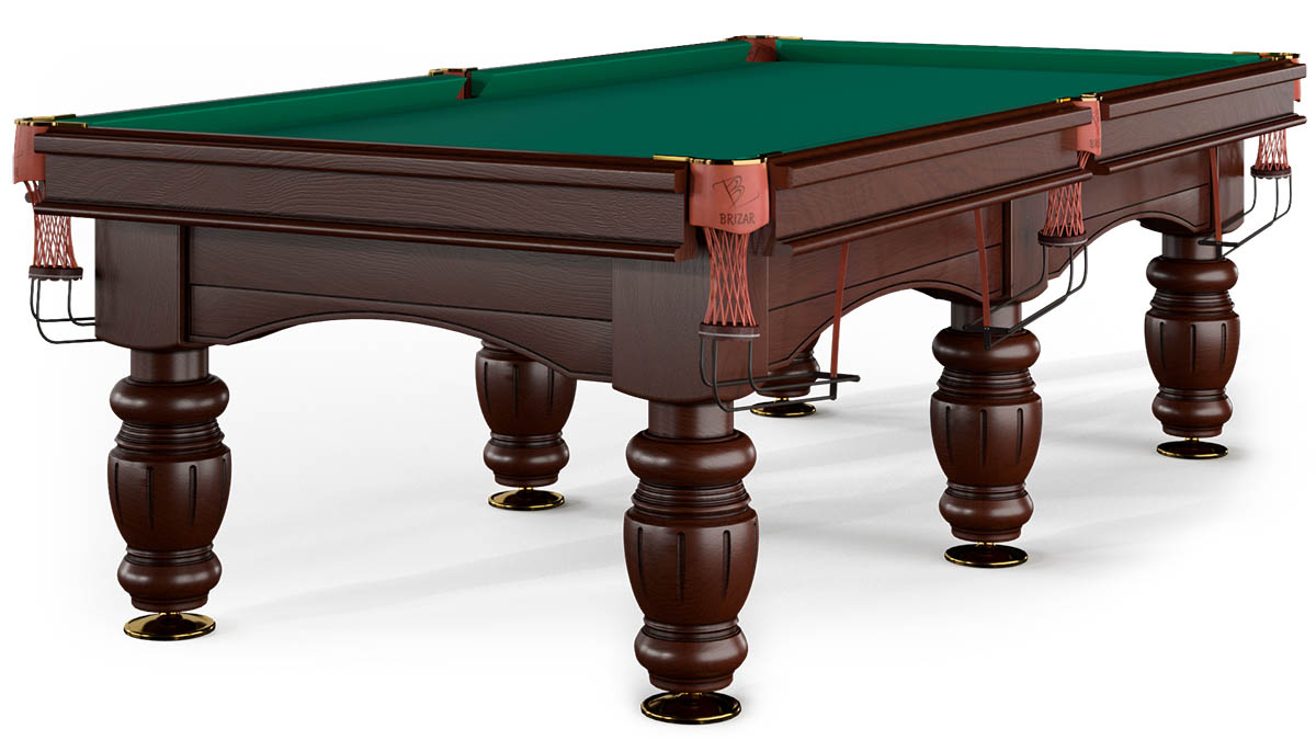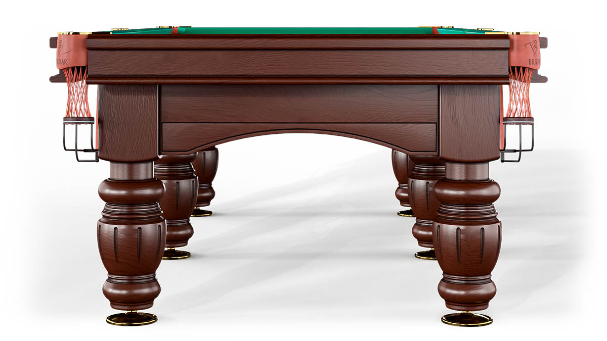 Бильярдный стол Персей относиться к профессиональной серии столов. Мощная усиленная рама, обеспечивает максимальную статичность. Детали стола не меняют свою геометрию со временем. Это удалось достичь компании Brizar, благодаря особому подходу к сушке и технологии переклейки древесины. За высокие игровые характеристики отвечает сукно и бортовая резина от известных мировых производителей. Игровое поле может быть как из искусственного камня, так и из натурального сланца двойной шлифовки. Лузы стола из латуни, отделаны кожей ручной работы и имеют систему скатов, которые дополнительно прорезинены для устранения звона при падении шаров в лузу. Бильярдный стол Персей порадует не только надежностью и игровыми качествами, но и станет украшением любого интерьера!
