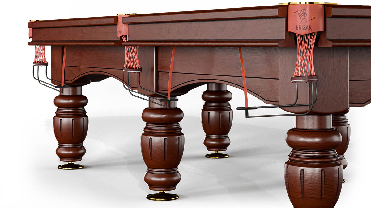 Бильярдный стол Персей относиться к профессиональной серии столов. Мощная усиленная рама, обеспечивает максимальную статичность. Детали стола не меняют свою геометрию со временем. Это удалось достичь компании Brizar, благодаря особому подходу к сушке и технологии переклейки древесины. За высокие игровые характеристики отвечает сукно и бортовая резина от известных мировых производителей. Игровое поле может быть как из искусственного камня, так и из натурального сланца двойной шлифовки. Лузы стола из латуни, отделаны кожей ручной работы и имеют систему скатов, которые дополнительно прорезинены для устранения звона при падении шаров в лузу. Бильярдный стол Персей порадует не только надежностью и игровыми качествами, но и станет украшением любого интерьера!