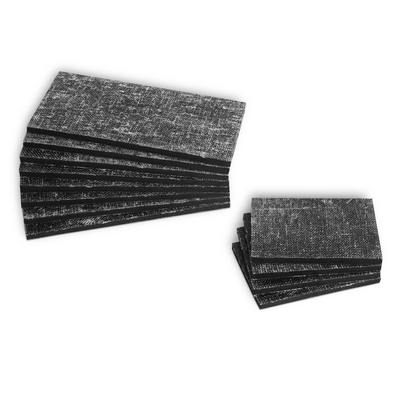 Изготовленные из прочной резины пластины используются для выравнивания и амортизации при установке бортов на монтируемый бильярдный стол. Специалистам по монтажу бильярдных столов предлагается набор пластин из двенадцати пластин длиной 95 и 60 см и толщиной 4 мм каждая.