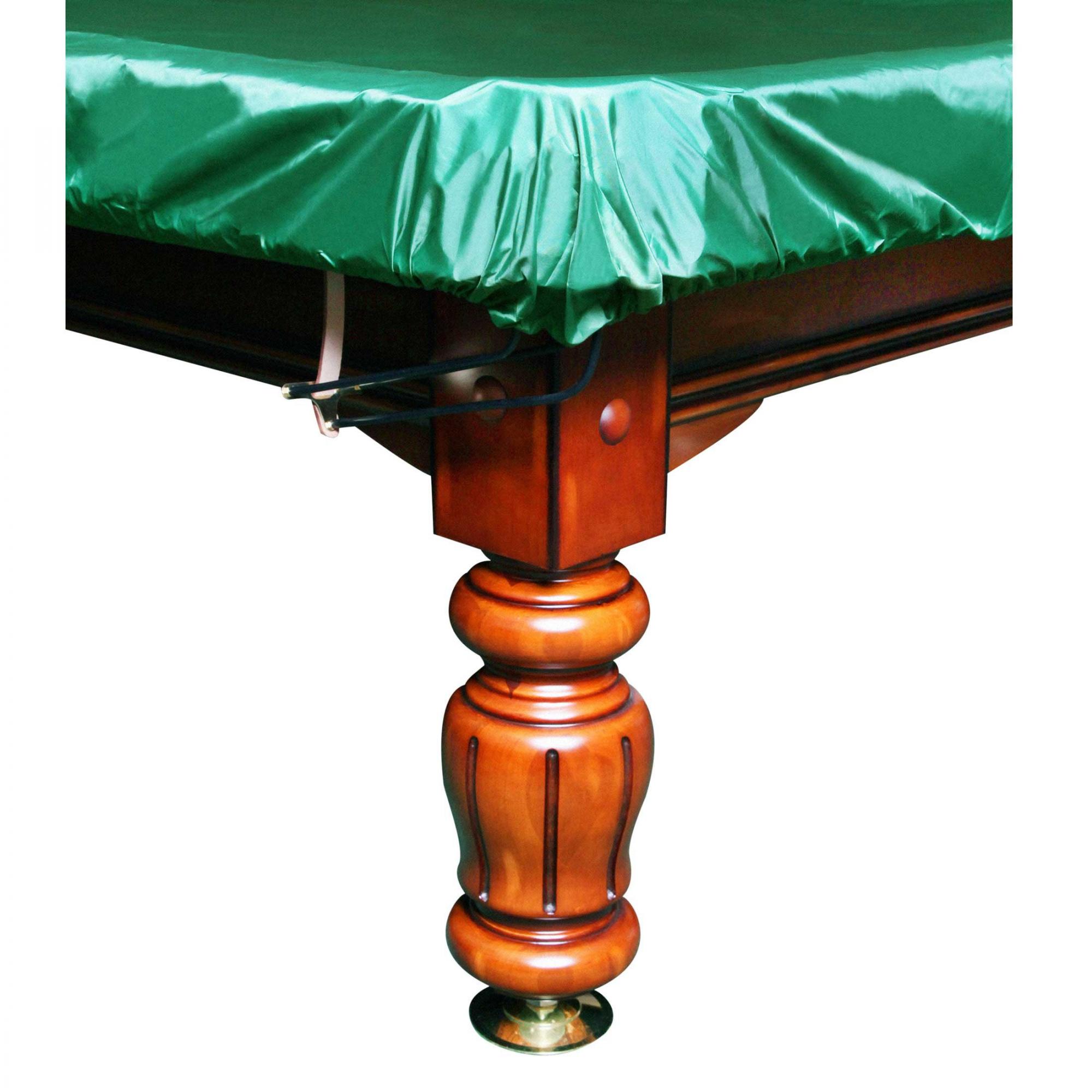 Покрывало «Стандарт» выполнено из ПВХ, очень практичного и недорогого полимерного материарила. Оно идеально защищает бильярдный стол от пыли, влаги, солнечного света и случайных царапин в промежутках между игрой. Благодаря покрывалу, сукно не выгорает на солнце и необходимость чистить сукно от пыли появляется реже. Как следствие, поверхность бильярдного сукна сохраняет свои свойства более длительный срок.