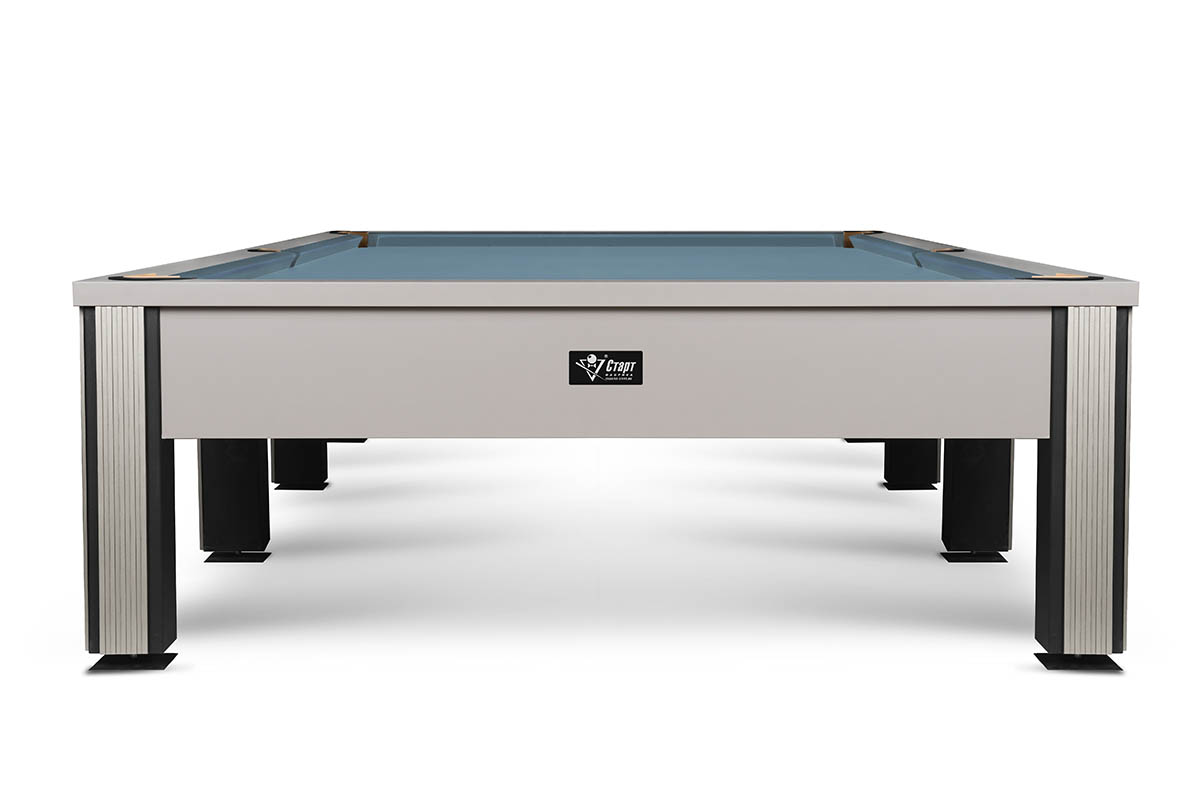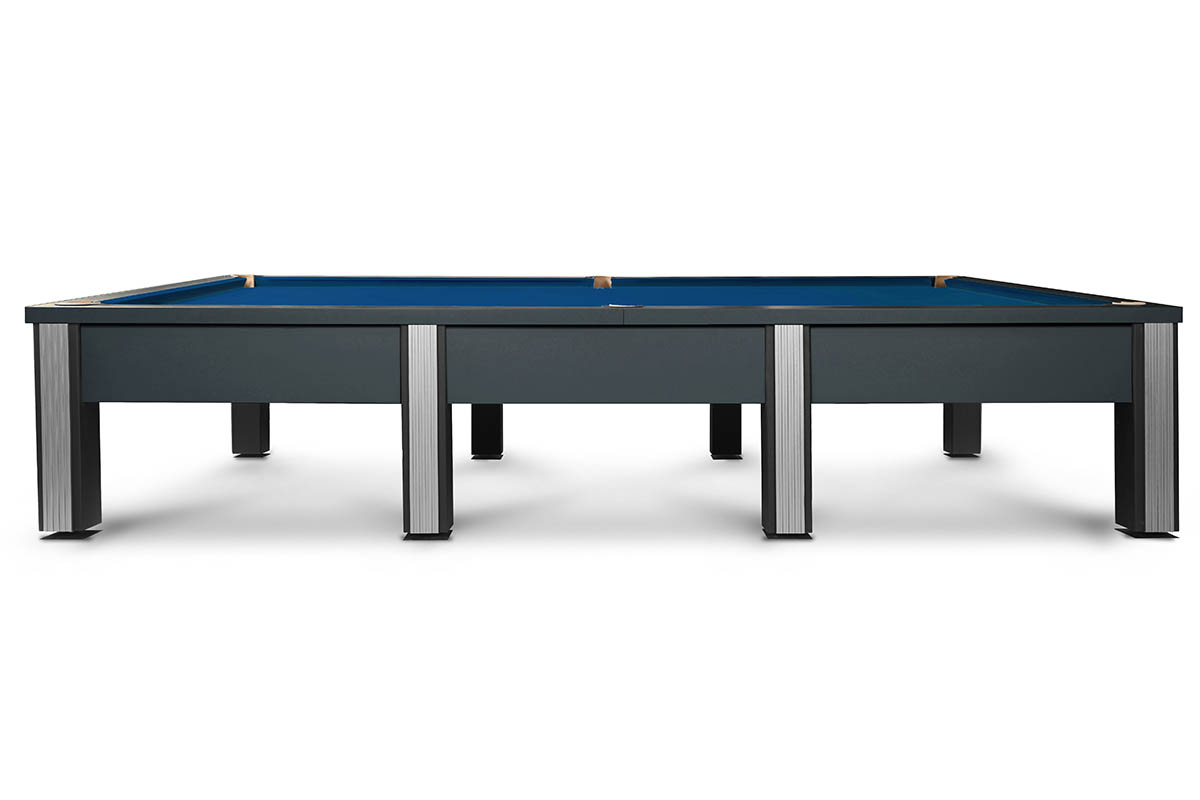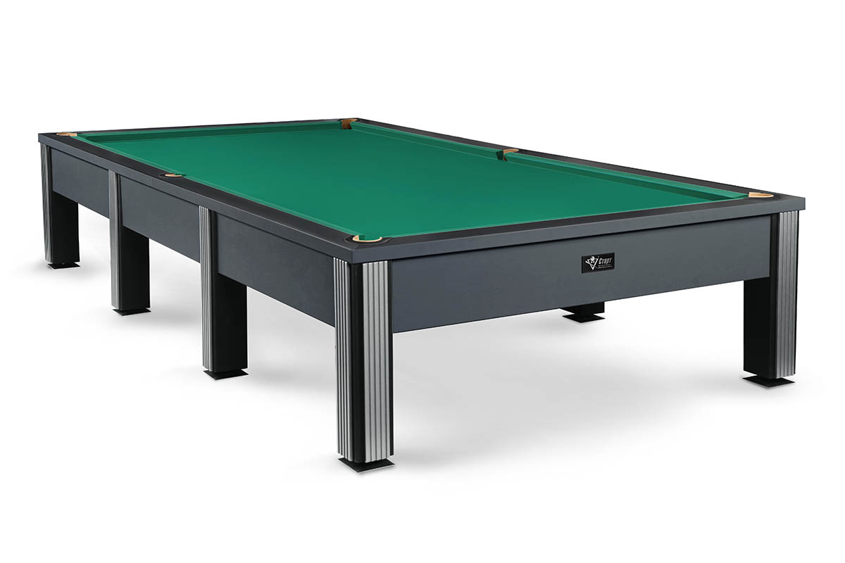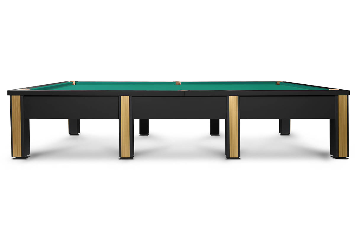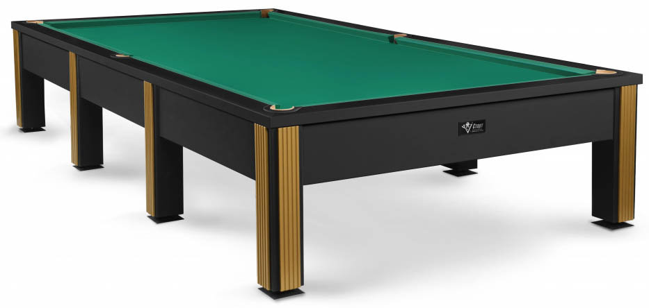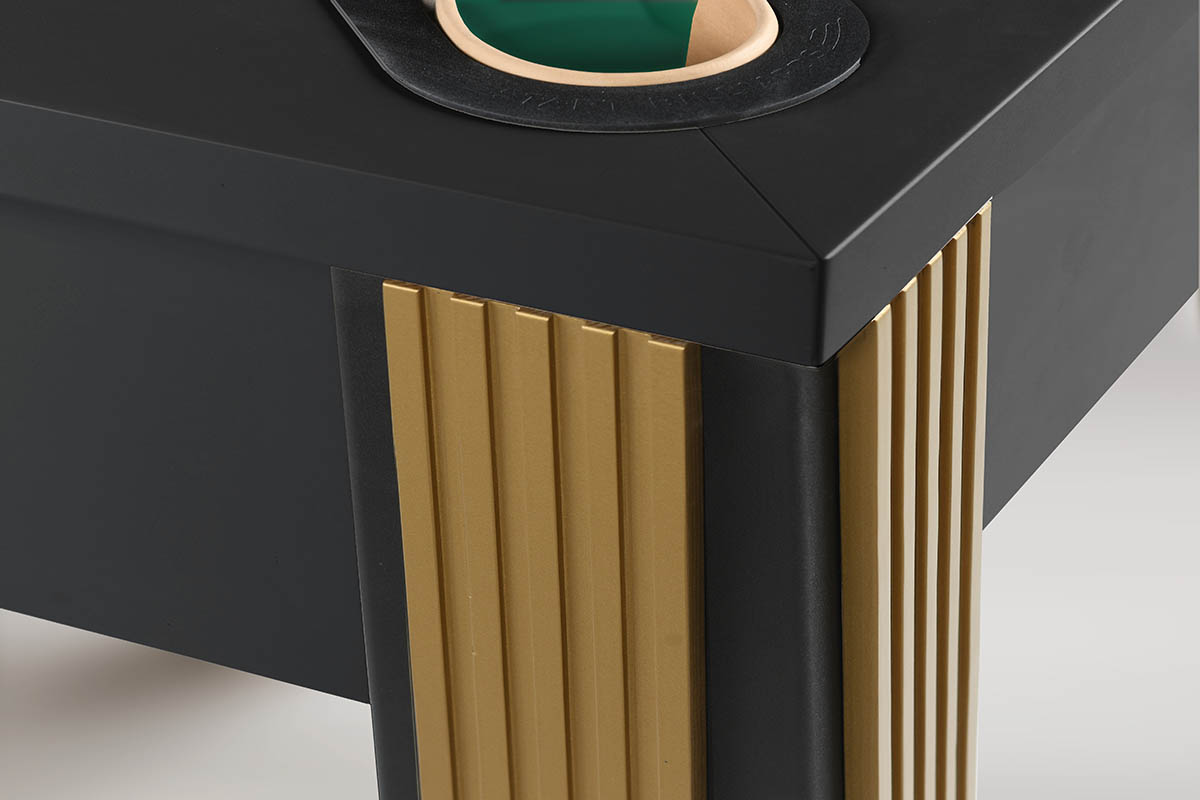 Его лаконичный дизайн построен на мощном контрасте: матовый черный металл строгих ног и безупречная гладь игрового поля. Лаконичный декор в серебре или золоте расставляет финальные акценты, подчеркивая статусность модели.
