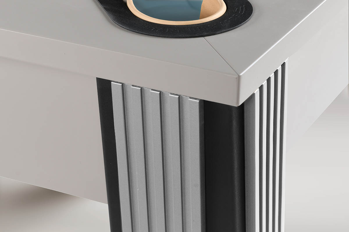Модель доступна в двух вариациях исполнения: из высокопрочной древесноволокнистой плиты и комбинации высокопрочной древесноволокнистой плиты и шпона ясеня. К каждому материалу подобрана своя идеальная палитра выкрасов, что позволяет интегрировать стол в любой современный интерьер — от лофта до минимализма.