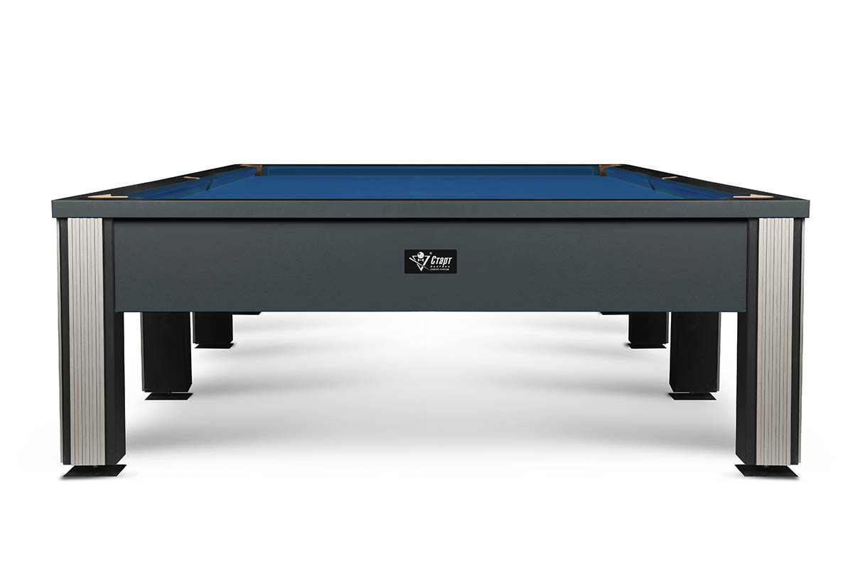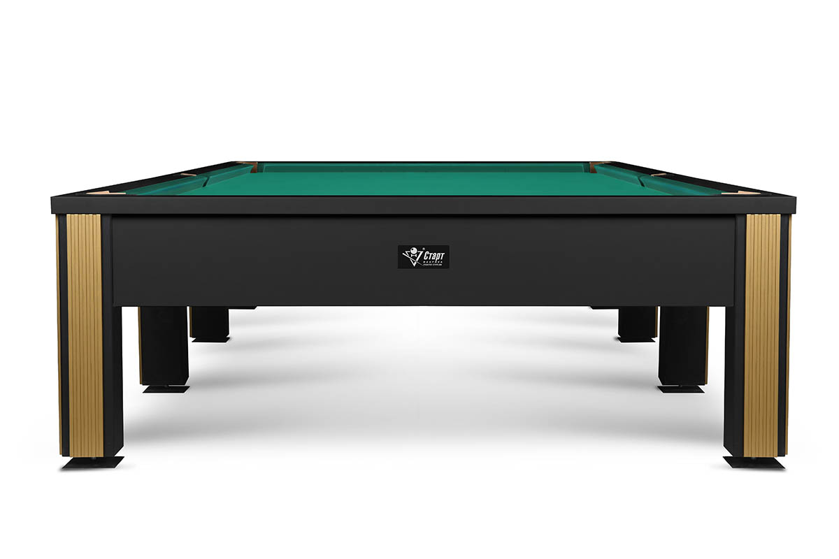Его лаконичный дизайн построен на мощном контрасте: матовый черный металл строгих ног и безупречная гладь игрового поля. Лаконичный декор в серебре или золоте расставляет финальные акценты, подчеркивая статусность модели.