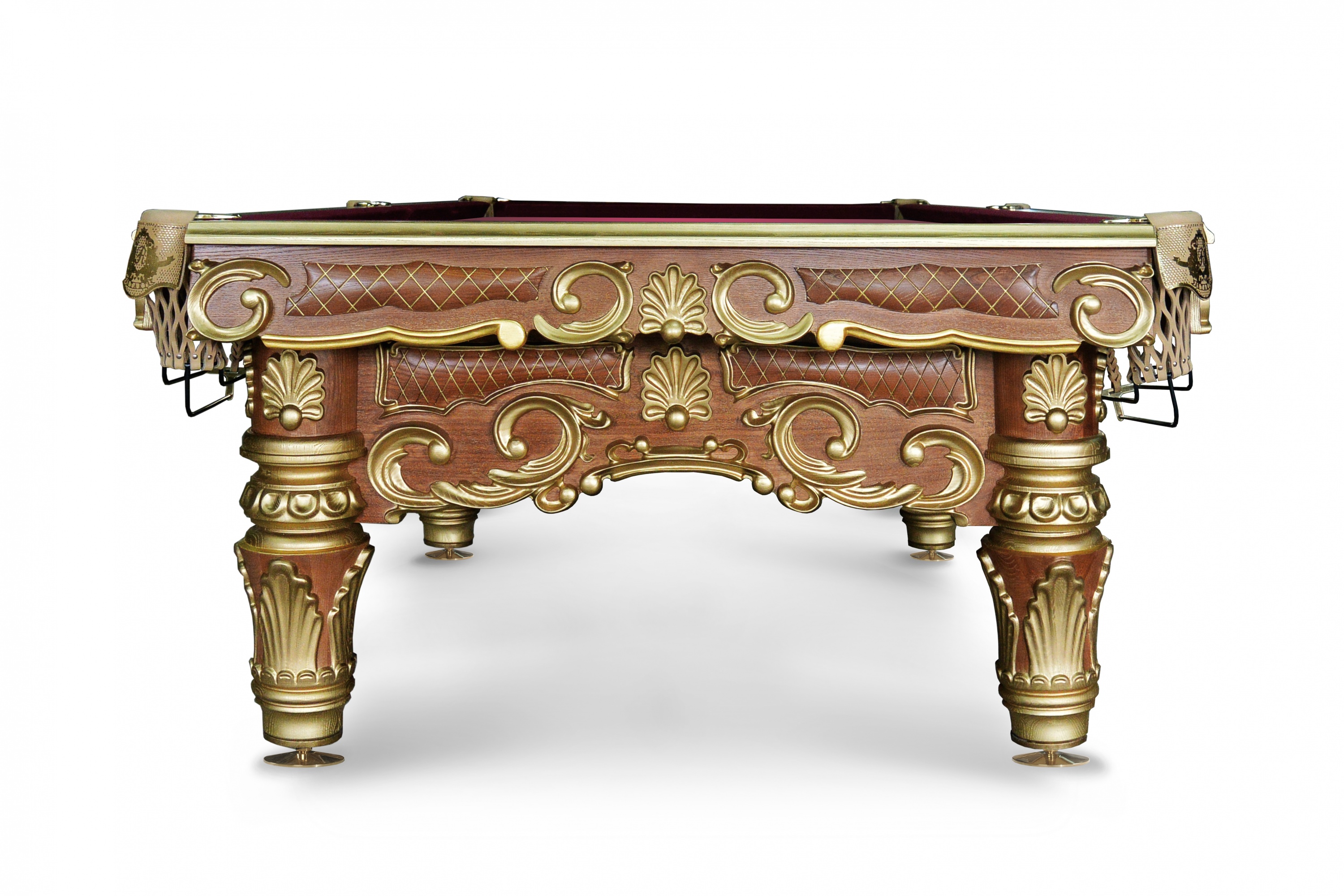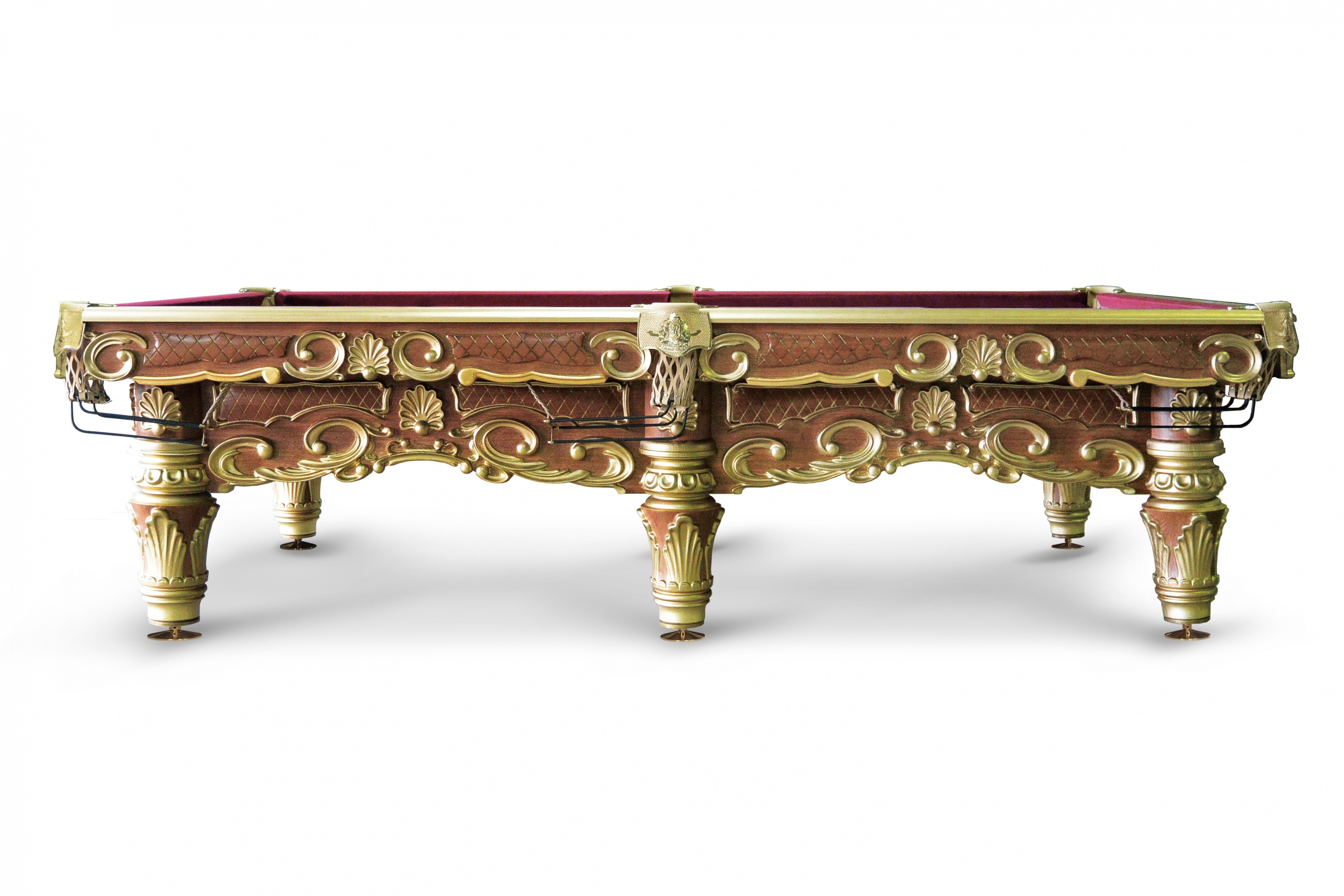 Все комплектующие и материалы неизменно высокого уровня. А так как конструкцией не предусмотрена усиленная металлическая рама, удалось снизить стоимость модели, сделав «Ренессанс-Лайт Голд» более доступным вариантом для почитателей бильярдного эксклюзива.