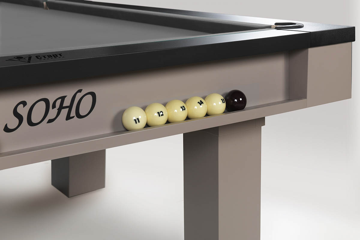 Бильярдный стол SOHO - гармоничное сочетание строгости линий и функциональности. Минималистичный стиль стола SOHO делает его идеальным решением для современного интерьера бильярдной комнаты.