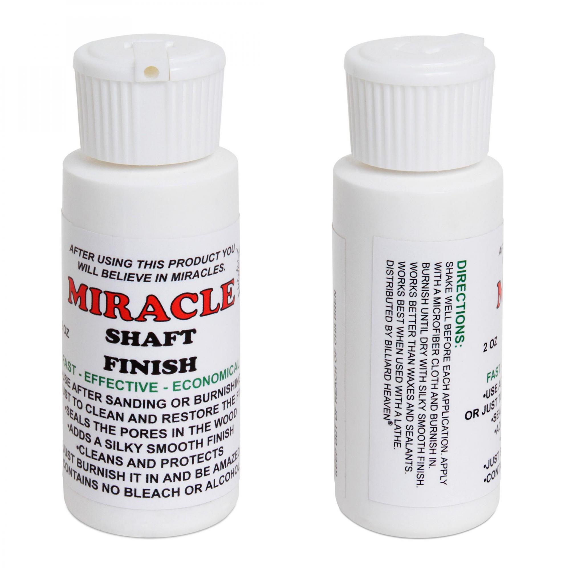 Miracle Shaft Finish – это революционно новый продукт, который очищает поверхность, герметизирует поры и восстанавливает внешний вид вашего кия. Необходимо использовать после шлифовки, чтобы предотвратить попадание влаги и грязи в поры древесины. Данное чистящее средство уже получило широкое распространение среди производителей, ремонтных мастерских и профессиональных игроков по всему миру. Неважно какой способ вы выберете, ручную чистку кия или обработку на токарном станке, вы всегда получите превосходный результат.