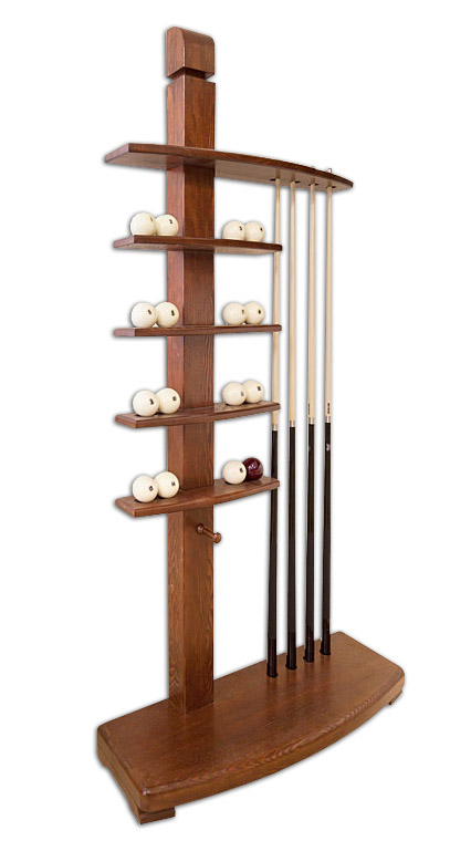 Киевница напольная «Мачта» от компании «Руптур» – оригинальный предмет мебели, предназначенный для упорядоченного хранения бильярдной атрибутики и украшения бильярдного помещения. Киевница устанавливается на полу в непосредственной близости от бильярдного стола. Шары размещаются на ее четырех параллельных полочках. Кии в количестве четырех располагаются с одной стороны. Вешалка для треугольника находится внизу под полками. Необходимые мелочи можно положить на верхнюю широкую полку, которая является элементом конструкции. Киевница сделана из массива дерева и имеет оригинальную форму в виде мачты корабля. Стильный предмет мебели подойдет к любому интерьеру бильярдной и оптимально впишется в помещения с ограниченной высотой потолков.