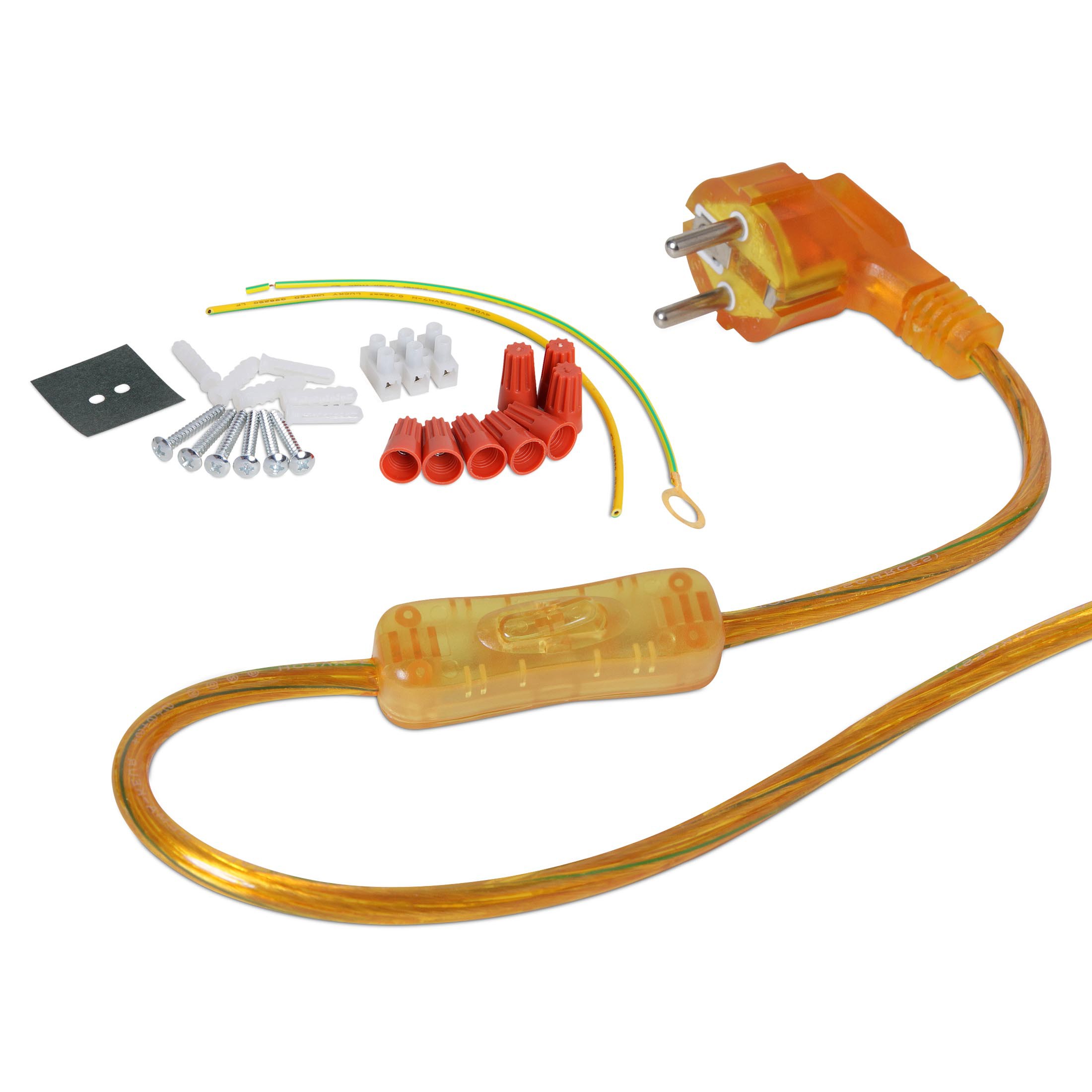 Электрический провод длиной 230 см укомплектован вилкой и выключателем, которые при необходимости могут быть удалены. Наличие вилки позволяет проверить работоспособность светильника при покупке. Вилка также может использоваться для постоянной работы.