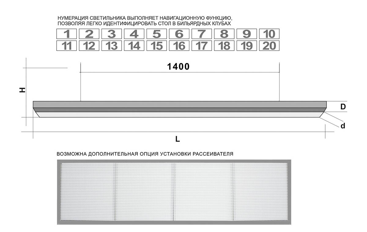 В комплекте идет ярко подсвеченная номерная табличка, интегрированная в узкий торец лампы - важный функциональный элемент «STARTBILLIARDS» Club Select 4. Это решение является не только эстетически привлекательным дополнением, но и выполняет навигационную функцию, позволяя легко идентифицировать стол издалека, что особенно удобно для бильярдных клубов.