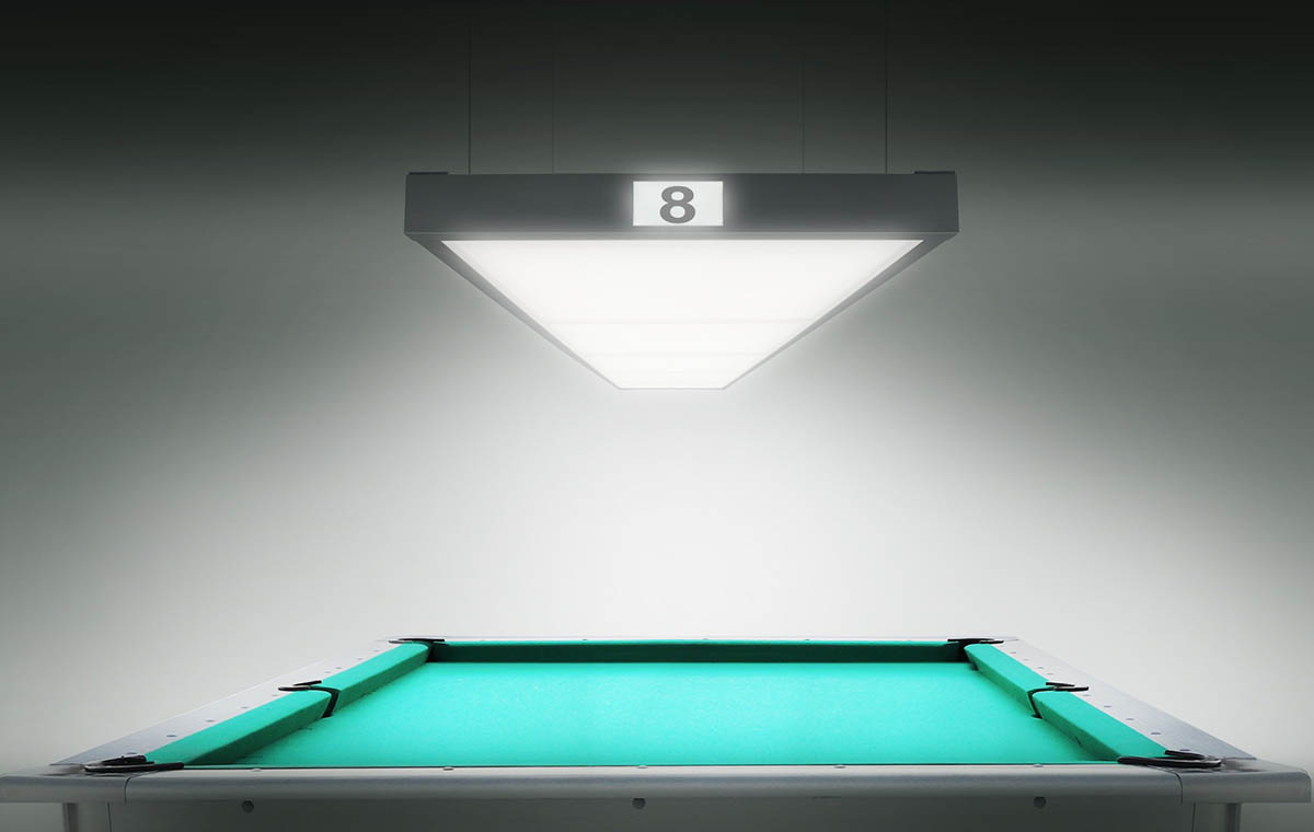 Инженерная мысль, воплощенная в четырех монолитных секциях, создает сбалансированный световой поток, который равномерно покрывает всю поверхность стола размером 7-9 футов.