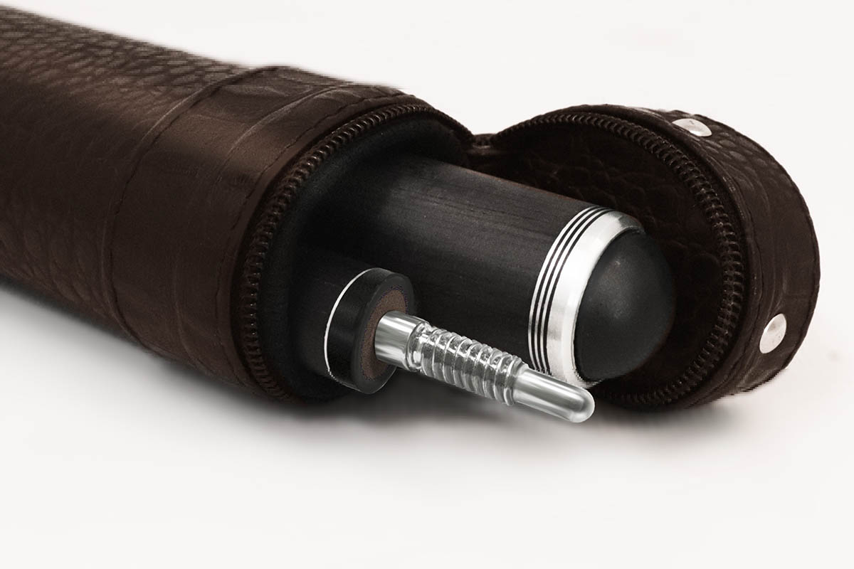 Отделение для кия на застежке "молния" разбито на две части мягкой перегородкой, что позволяет избежать соприкосновения и трения при переноске шафта и турняка. Тубус имеет регулируемый наплечный ремень для переноски и внешний карман для мелких аксессуаров, который можно перемещать по длине тубуса для выбора наиболее комфортного для игрока положения. Тубус PERFECT выполнен из высококачественной экокожи с легкой элегантной фактурой черного цвета.