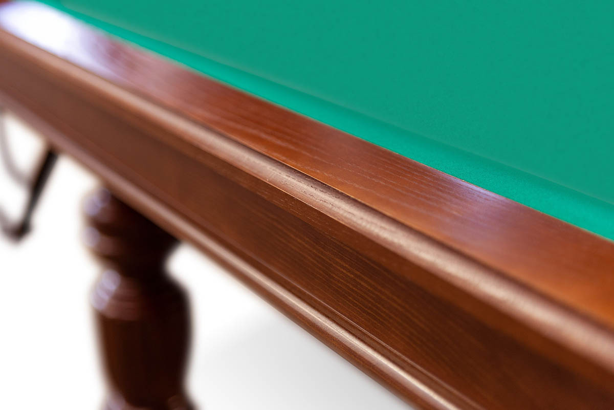 Правильная бортовая резина, сукно и лузы, которые идут в комплекте гарантируют столу отличные игровые свойства. Борта изготовленные из ясеня и лузами из желтой меди придают столу дорогой благородный вид.