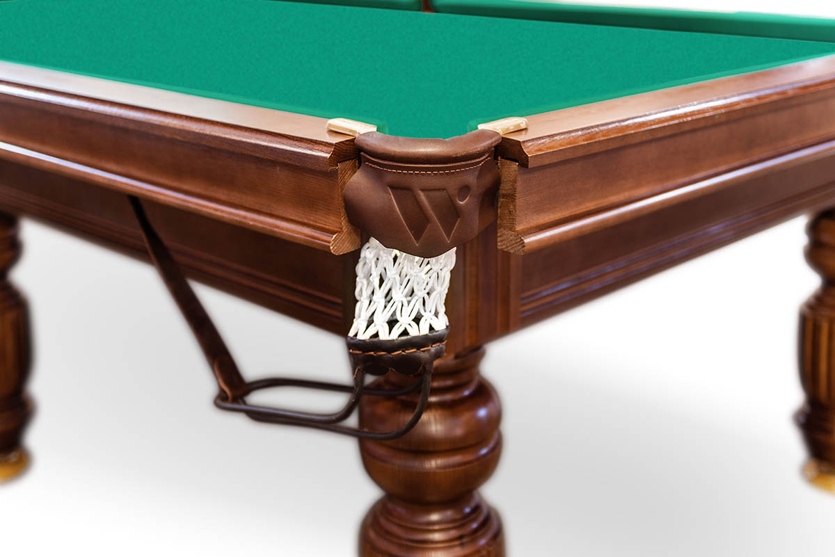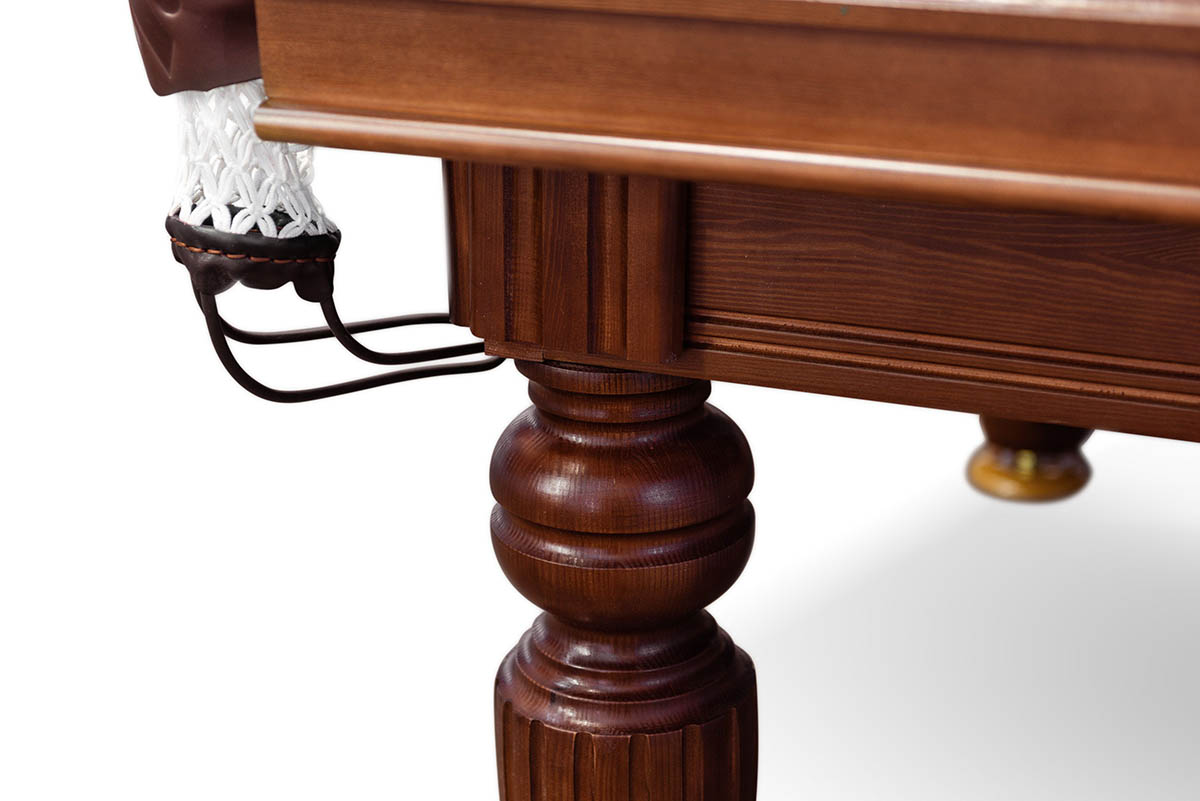 Правильная бортовая резина, сукно и лузы, которые идут в комплекте гарантируют столу отличные игровые свойства. Борта изготовленные из ясеня в сочетании с лузами из льна и кожи придают столу дорогой благородный вид.