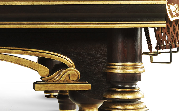 При создании бильярдного стола «Венеция Люкс» специалисты Фабрики «Старт» вдохновлялись красотой архитектуры одноименного итальянского города. Данную модель отличает элегантная отделка, напоминающая основные приметы пышного стиля эпохи Возрождения. Для декорирования резного лафета и элементов фигурных ног используется золотая поталь. Золотой блеск подчеркивает глубину цвета и фактурность благородных древесных пород – массива ясеня или дуба.