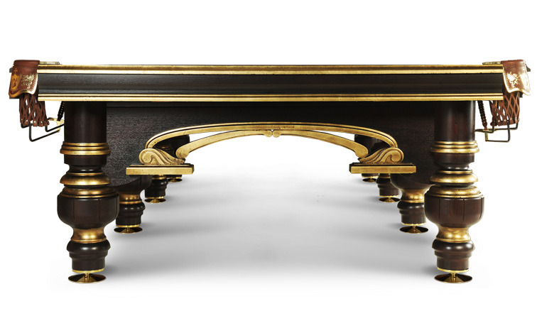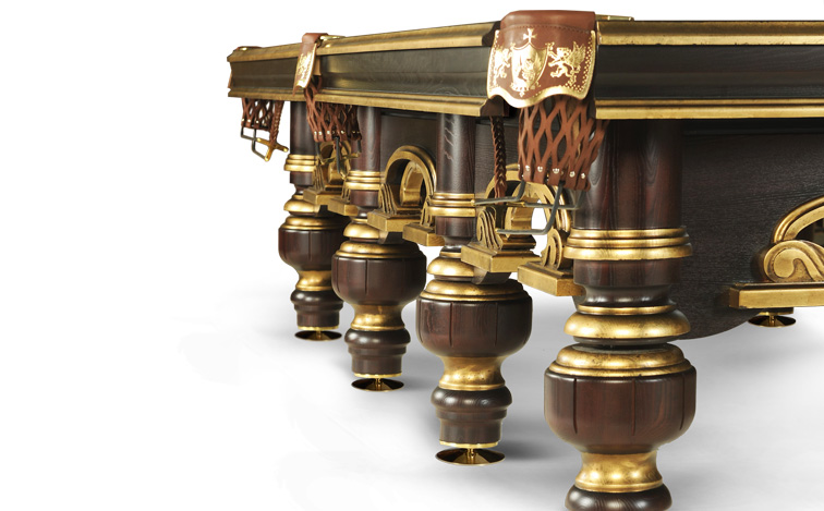 Выполненный в запоминающемся венецианском стиле бильярдный стол отличается не только великолепным внешним видом, но и высокотехнологичной конструкцией. Встроенный металлический каркас придает оптимальную устойчивость лафету. Стабильность всей конструкции усиливают увеличенные в диаметре винты ног и литые опорные чашки, изготовленные из латуни. Благодаря юстировочной системе поверхность стола идеально сохраняет горизонтальное положение. В качестве основы игрового поля использован 45-милиметровый сланец Orero-lux.