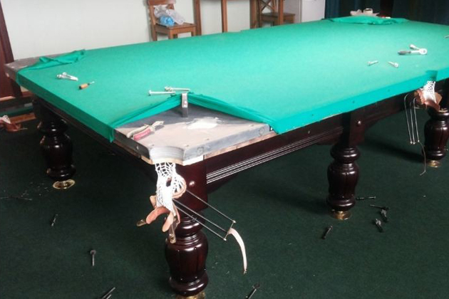 Юстировка игрового поля со снятием сукна и шпаклевкой плит (без учета перетяжки)